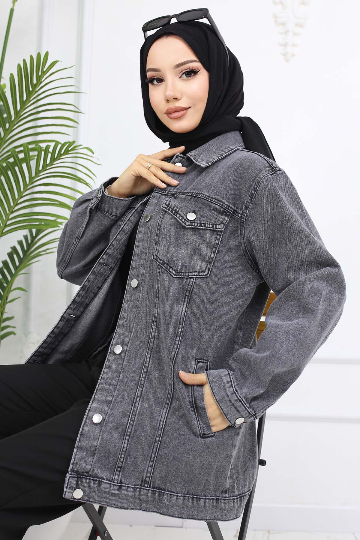BNG Women Hijab Denim Jacket Gray 704 - Villa de Álvarez