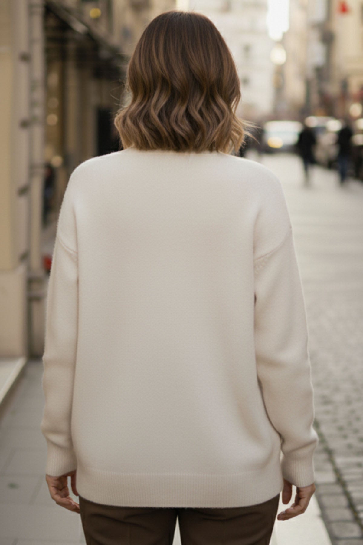 BNG Women İnci Detaylı Triko Hırka H25300 Krem - Marlboro