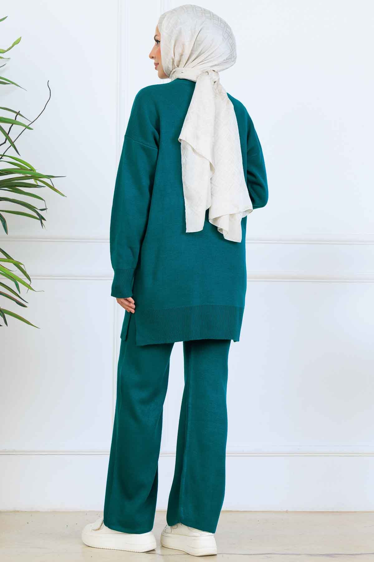 BNG Women İşleme Detay Triko Takım S1067 Zümrüt Yeşili - Calpulalpan