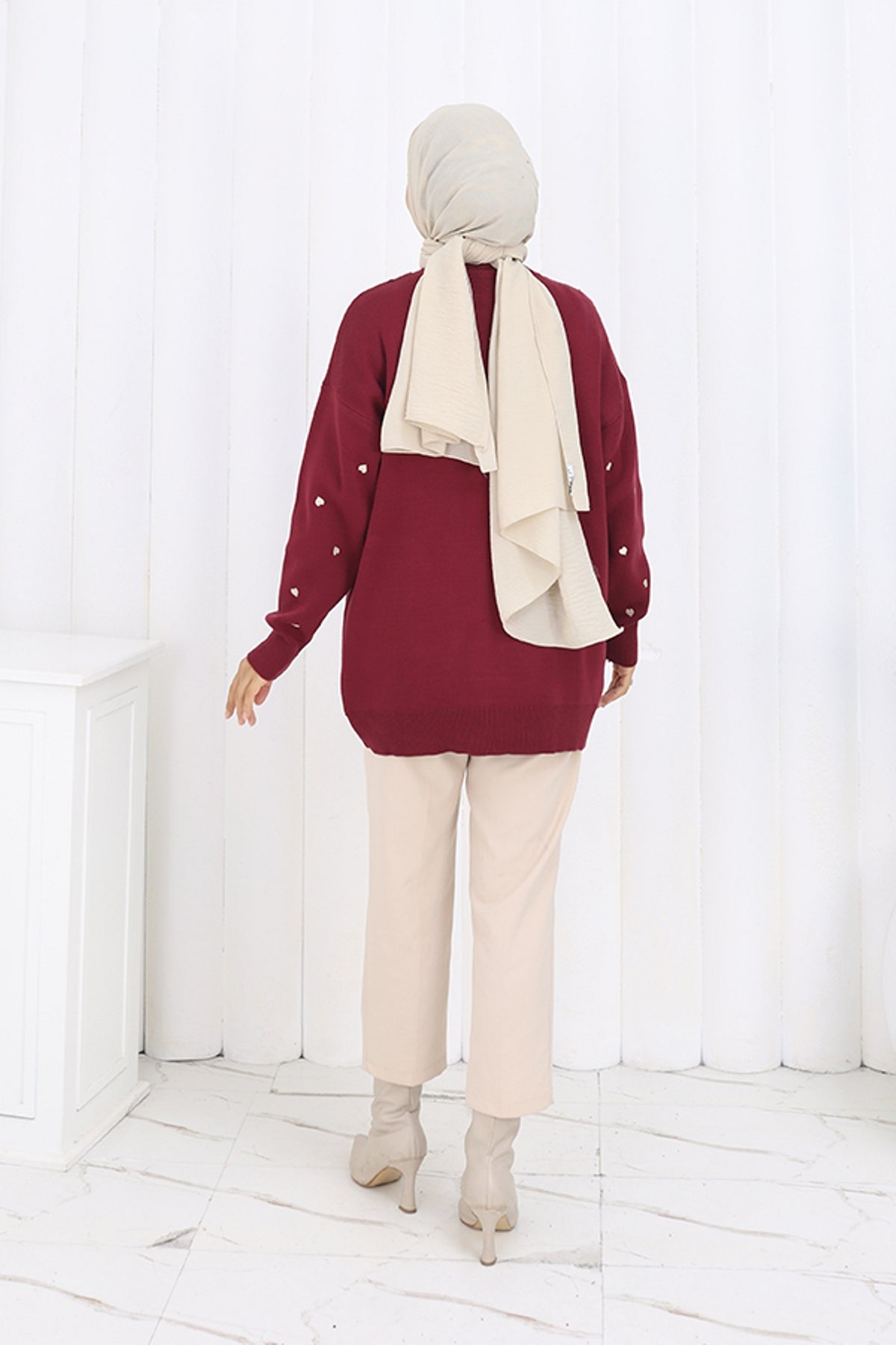 BNG Women Kalp Nakışlı Triko Kazak N3253 Bordo - Centreville