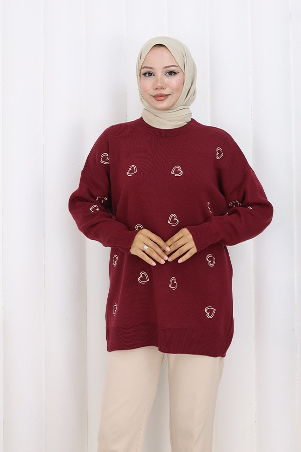 BNG Women Kalp Nakışlı Triko Kazak N3254 Bordo - Chervonohrad