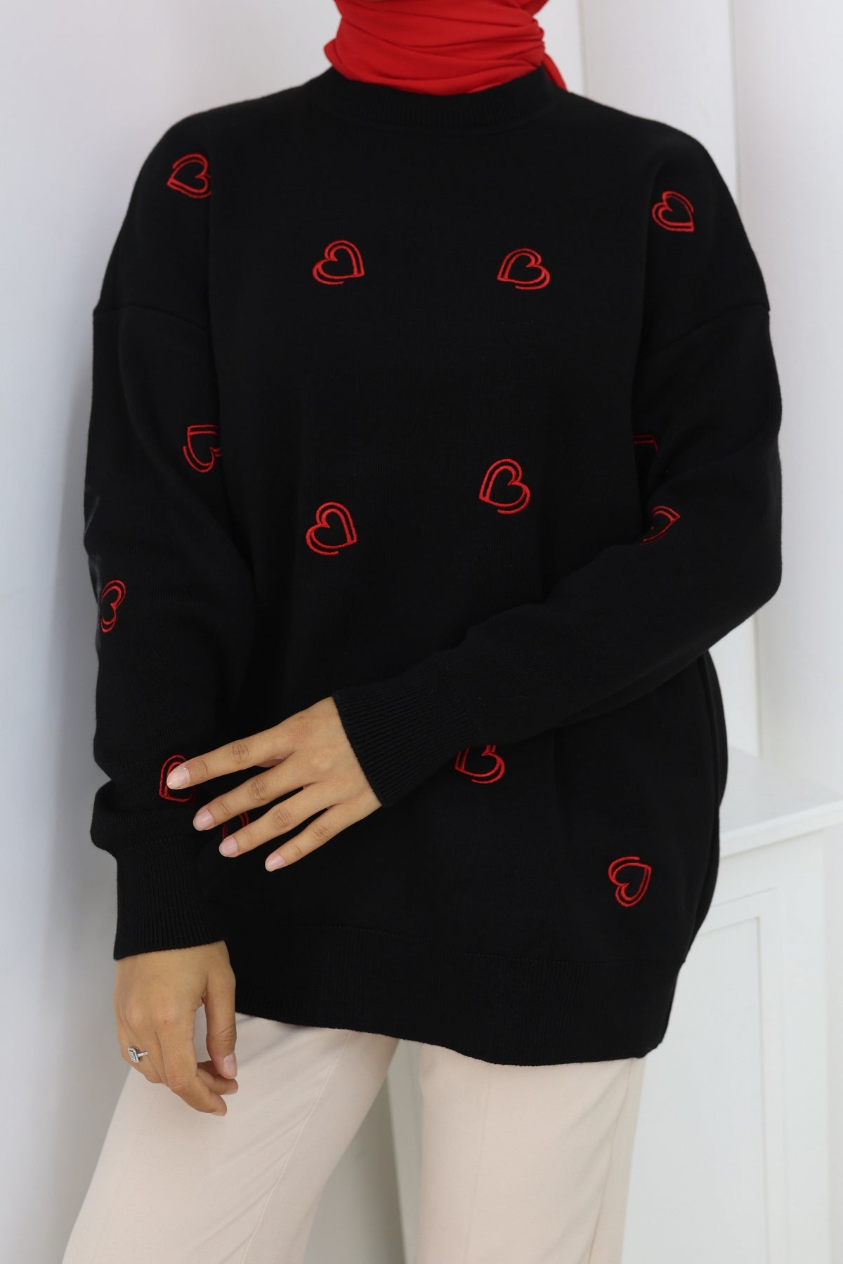 BNG Women Kalp Nakışlı Triko Kazak N3254 Siyah - Netishyn