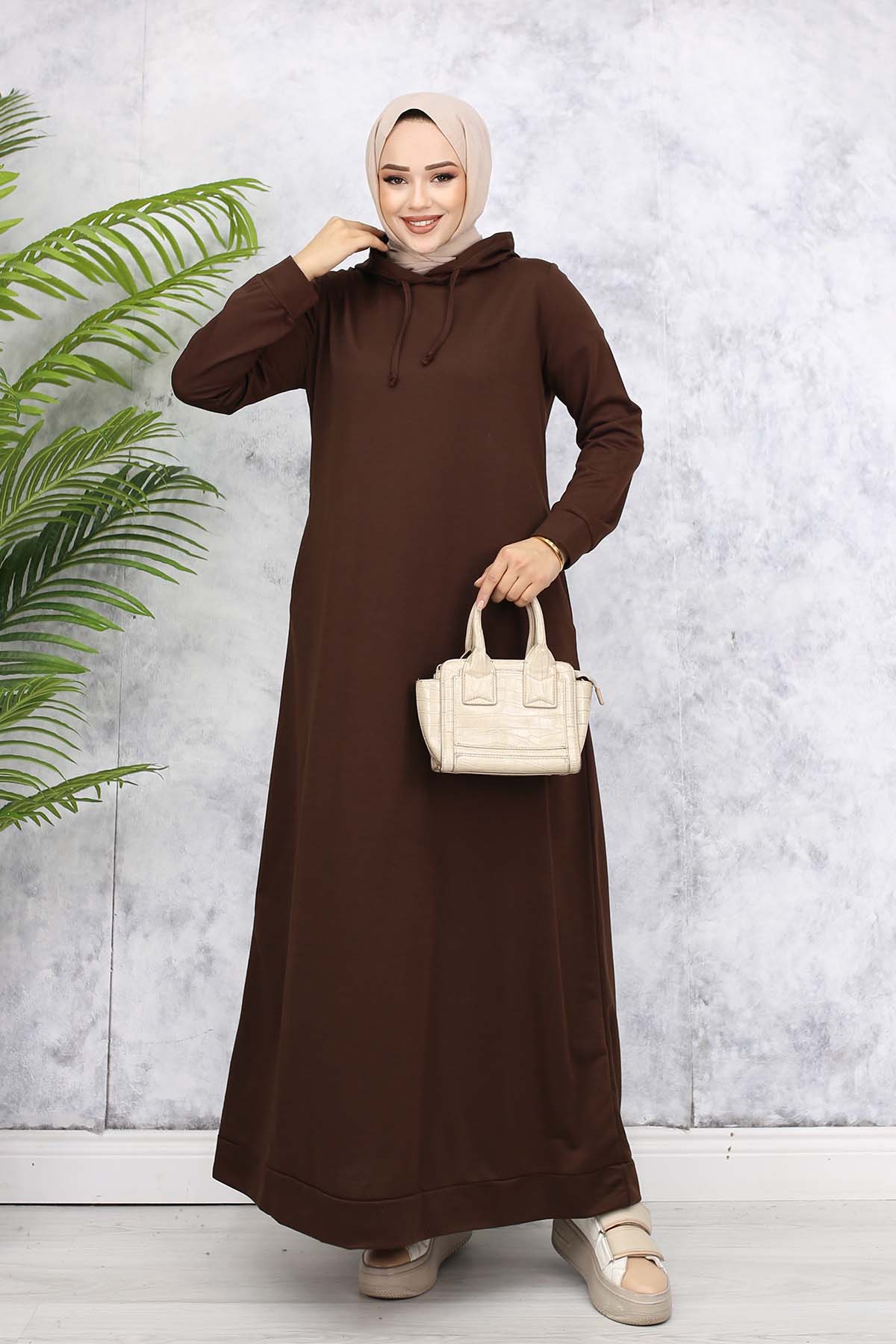 BNG Women Kapüşonlu Basic Elbise Kahverengi 5042 - Gillingham