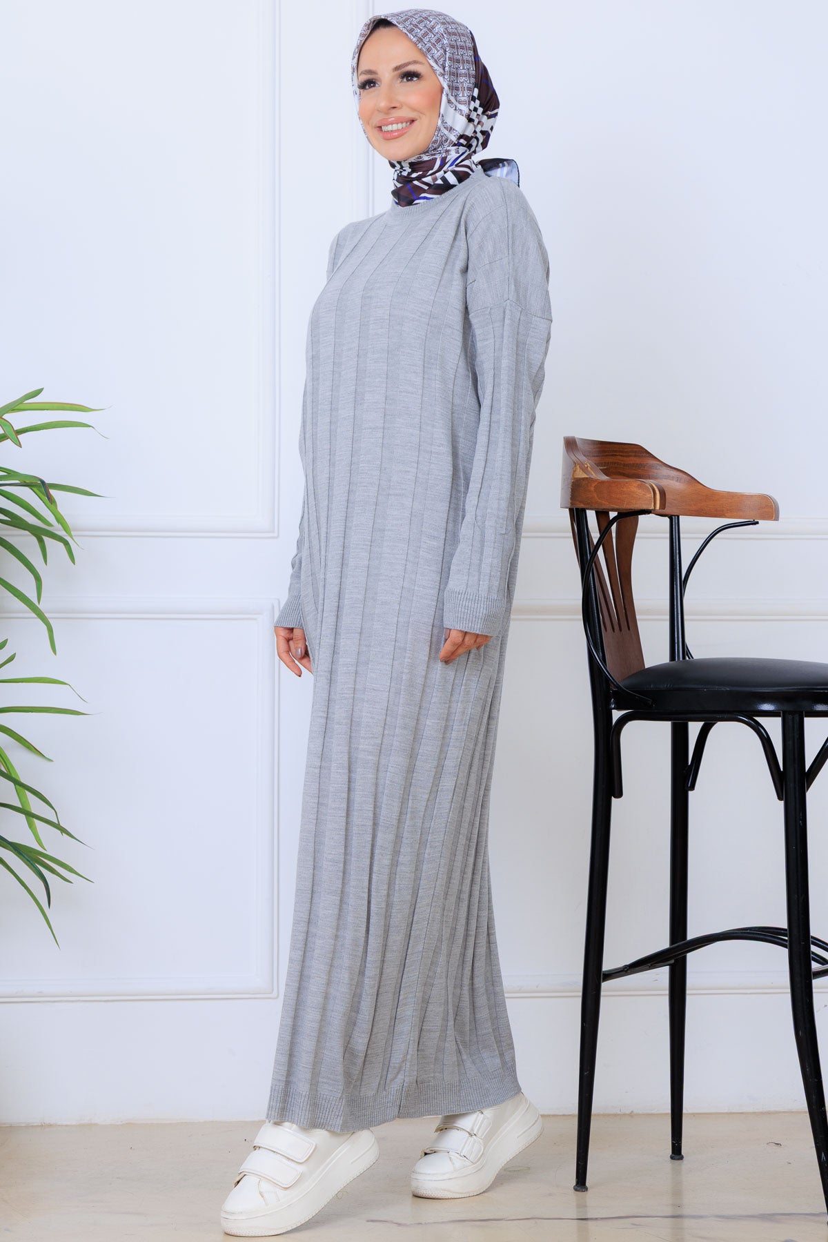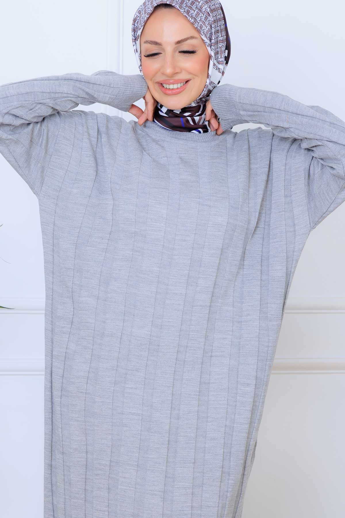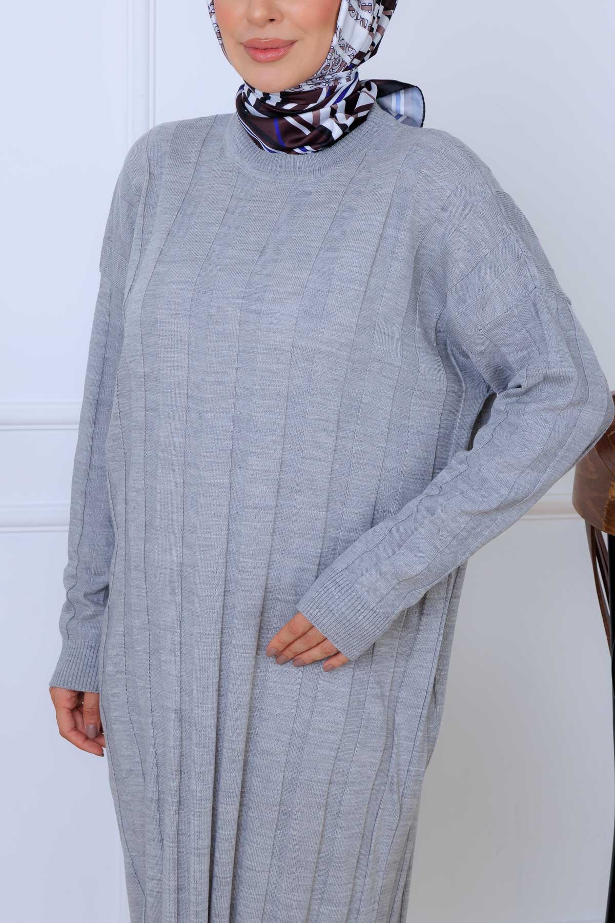BNG Women Kendinden Çizgili Triko Elbise K3021 Gri - Recklinghausen