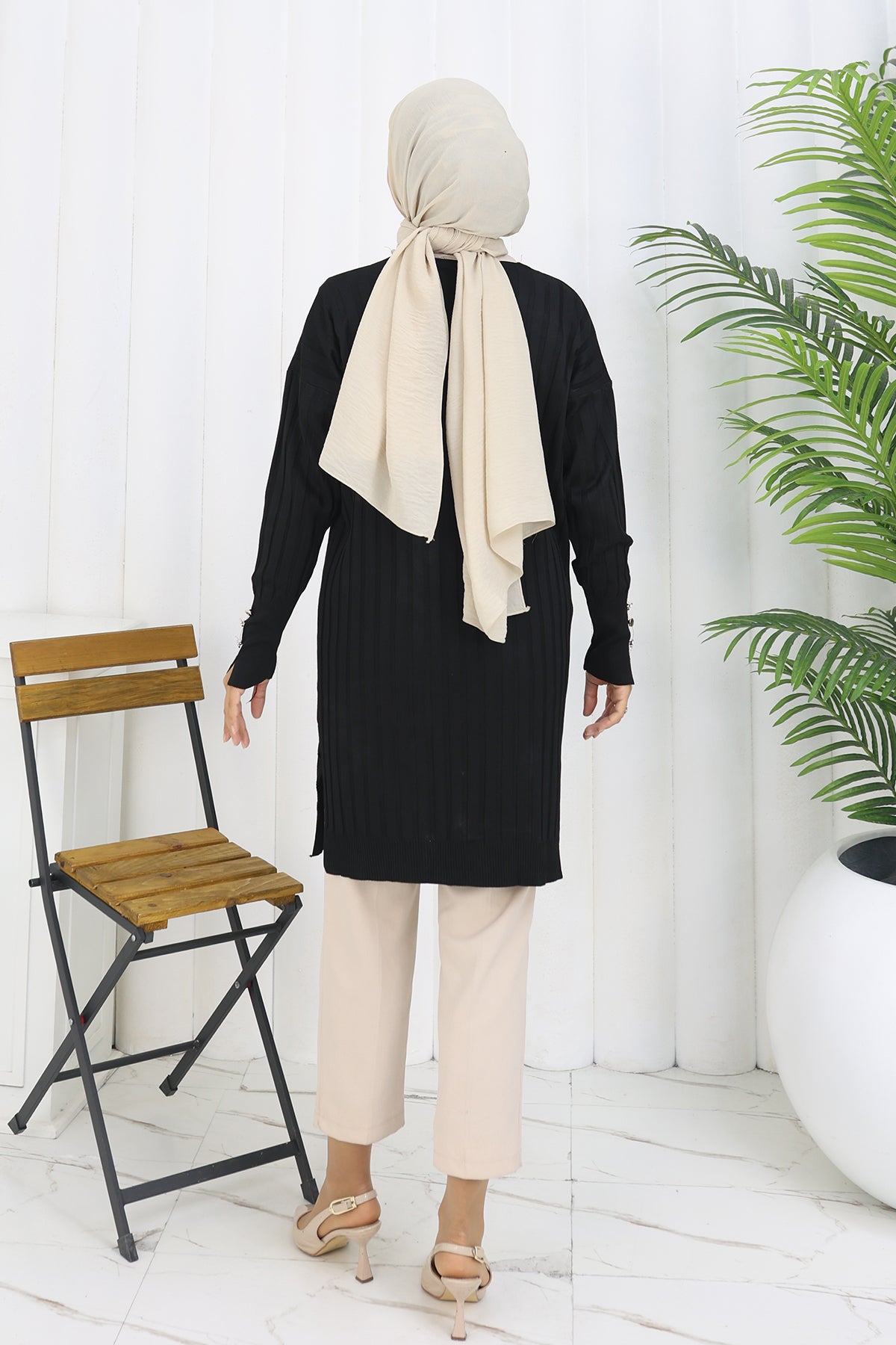 BNG Women Kendinden Çizgili Uzun Merserize Hırka N3179 Siyah - Hoorn