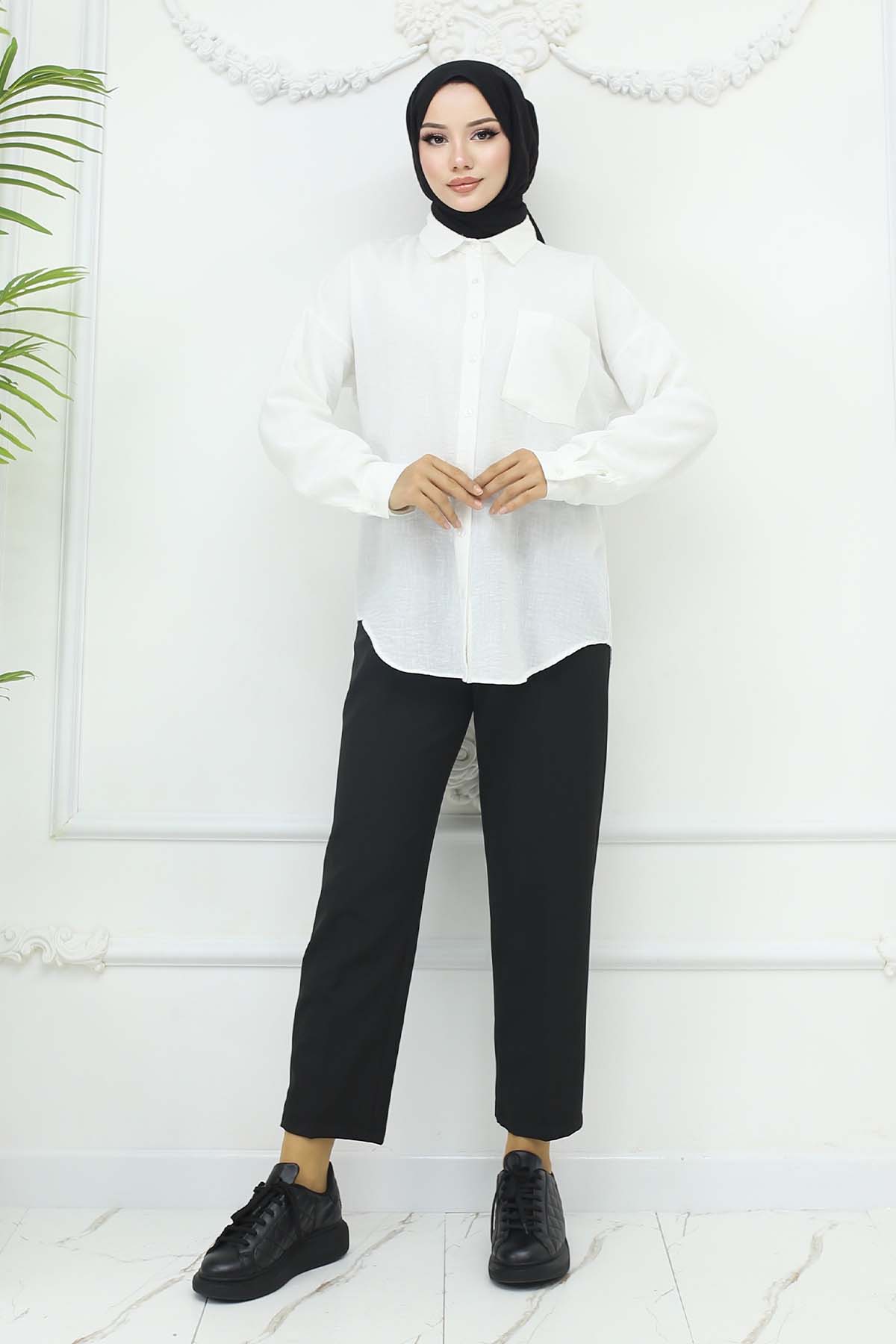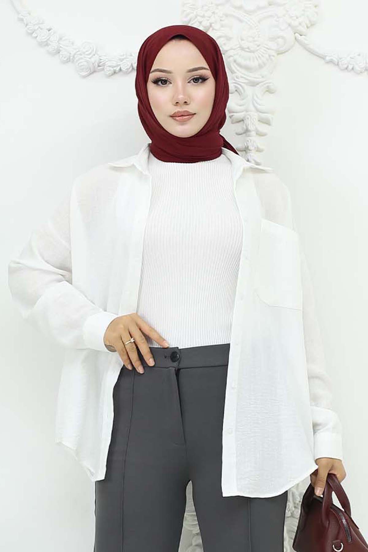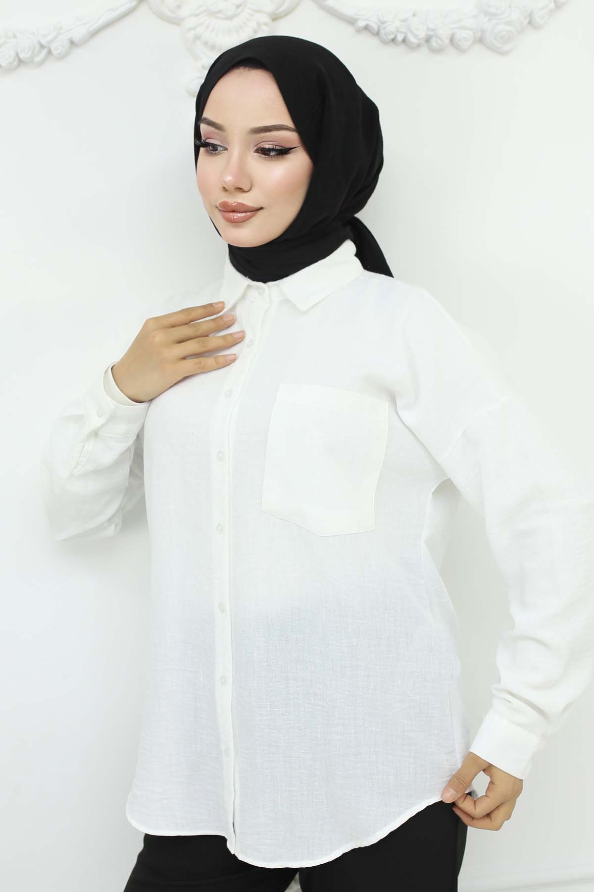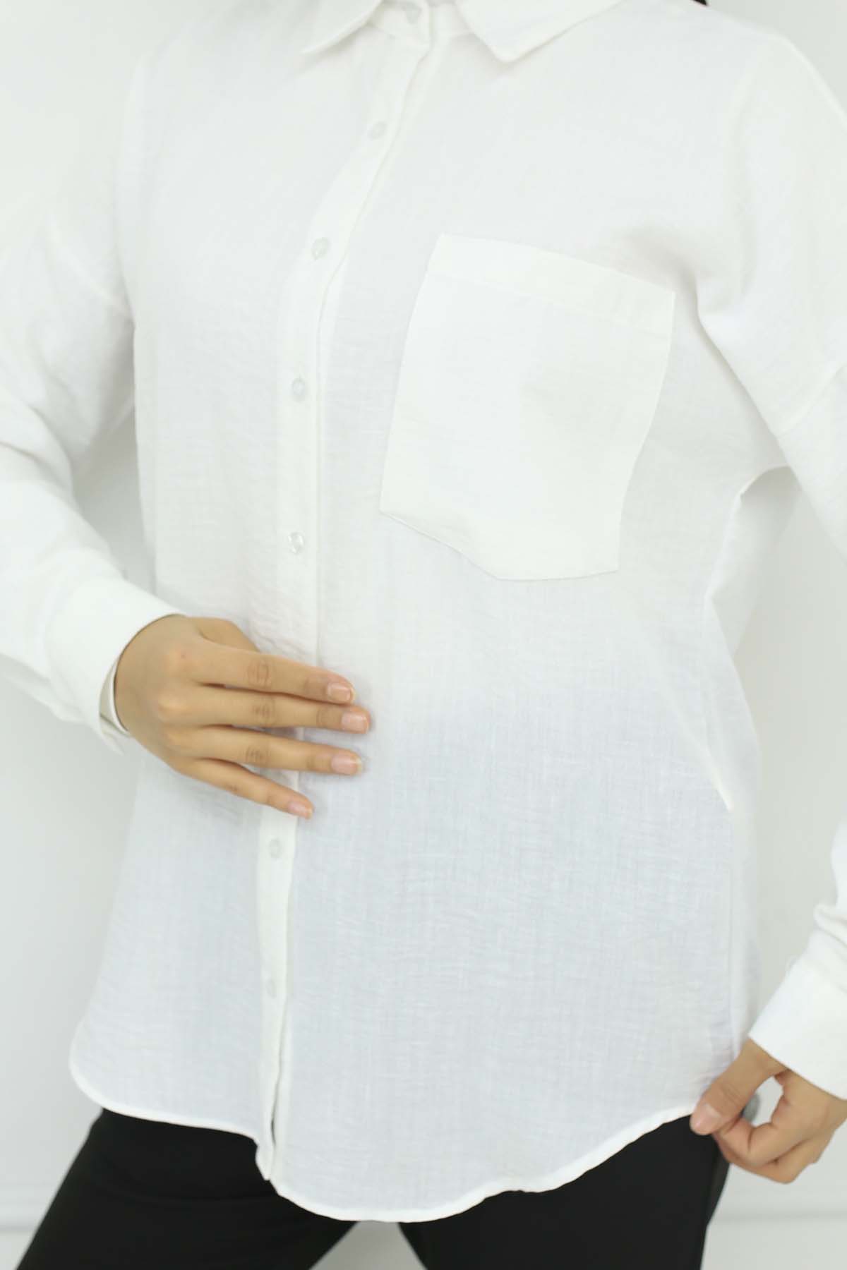 BNG Women Keten Gömlek Beyaz 20153 - Ciudad de Allende