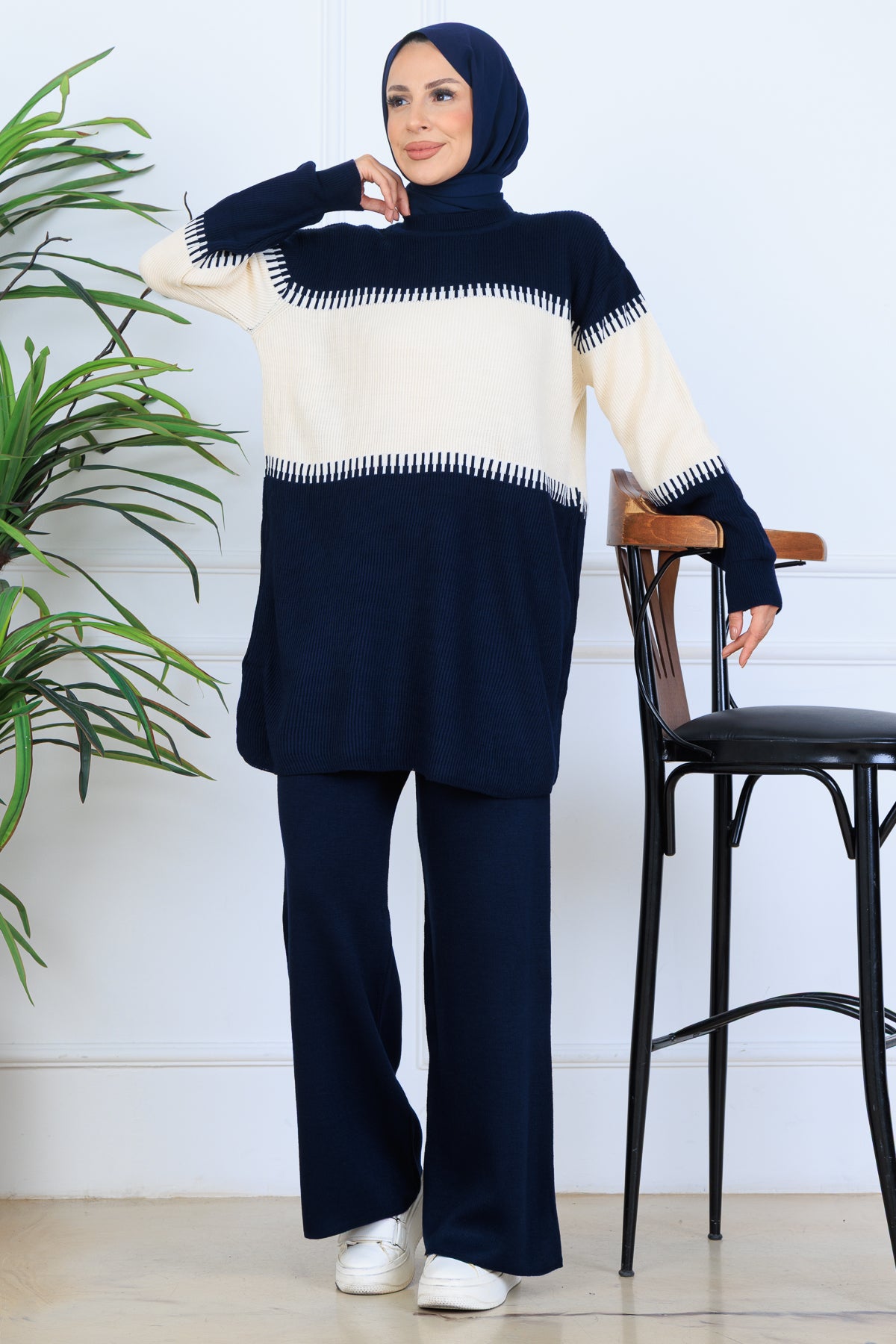 Product Information: Knitwear Length: 82 cm, Chest: 114 cm, Pants Length: 103 cm. Fabric type: 100% Acrylic Fabric. Model Measurements: Height: 168 cm, Chest: 83 cm, Waist: 68 cm, Hips: 90 cm. The product on the model is Standard Size. It is compatible with sizes 36-44. There may be a color difference due to concept shootings in the product color.