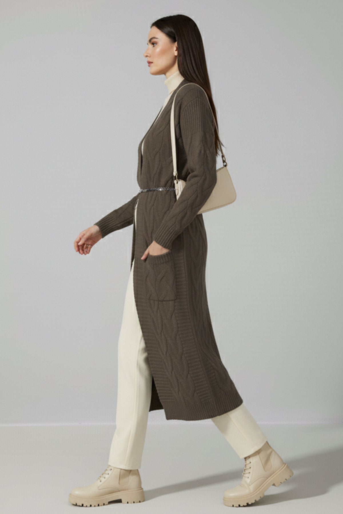 BNG Women Knitted Pattern Long Cardigan R2817 Mink - Arles