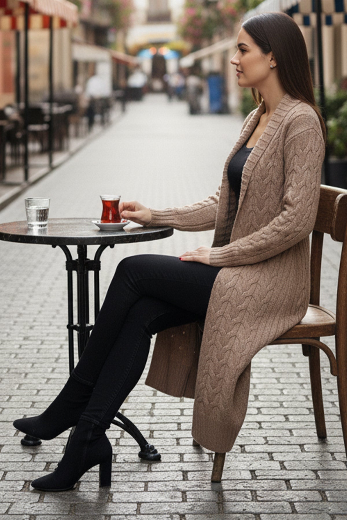 BNG Women Knitted Pattern Long Cardigan R4251 Mink - Enerhodar