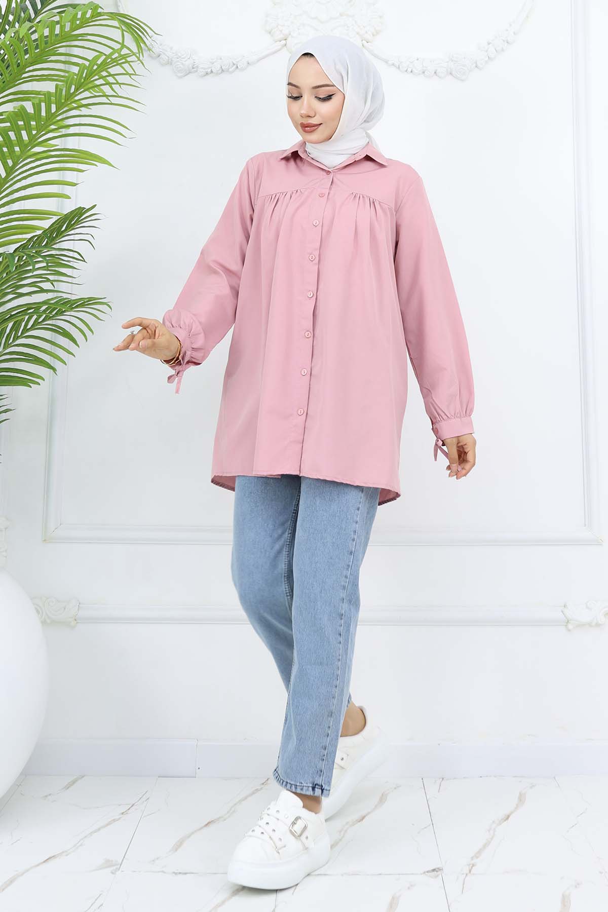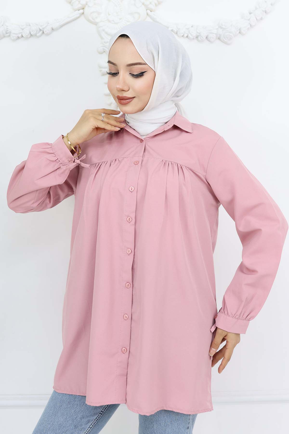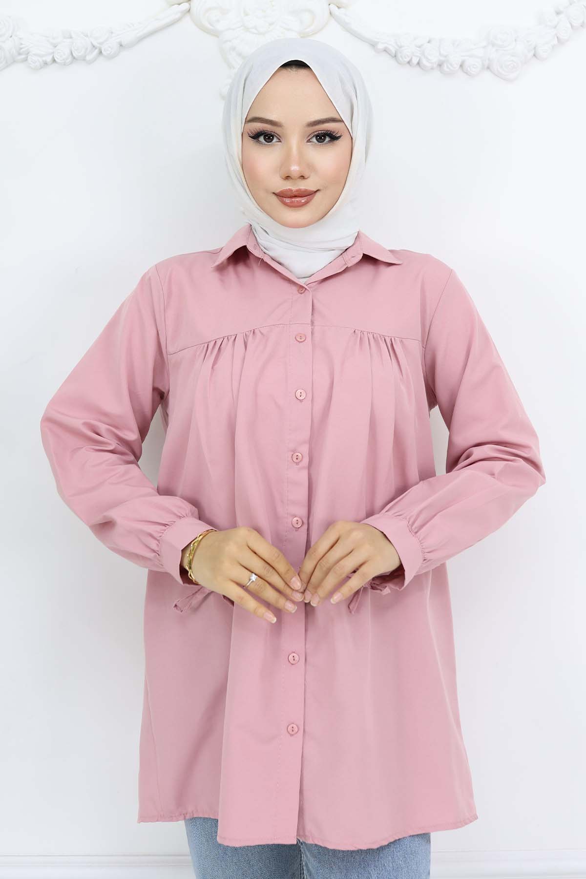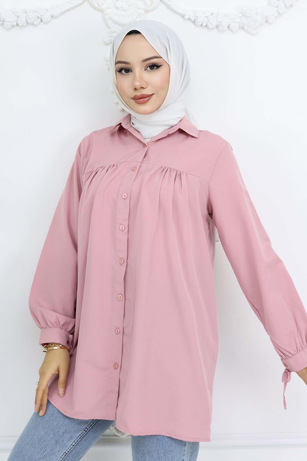 BNG Women Kolları Bağcıklı Tesettür Gömlek Pudra 12030 - Grand Rapids