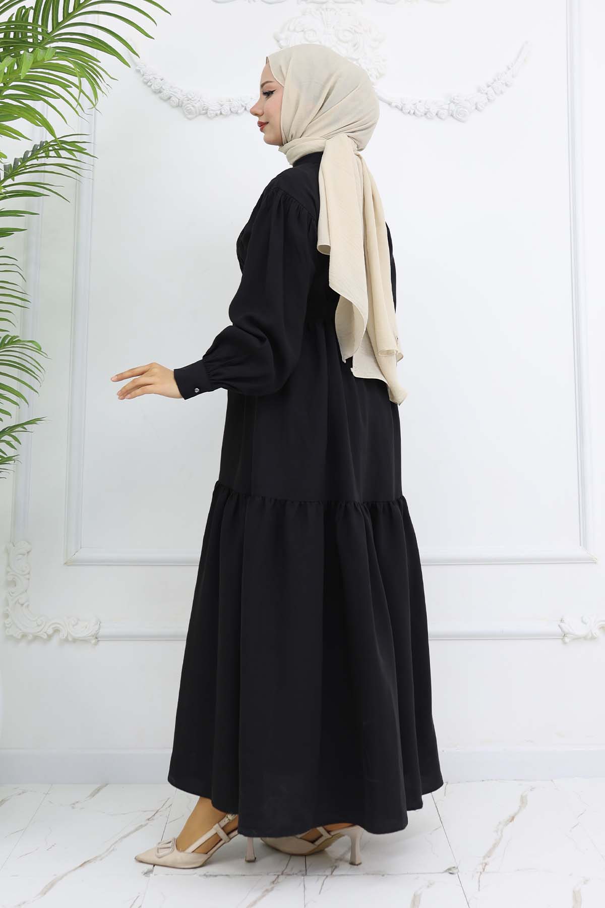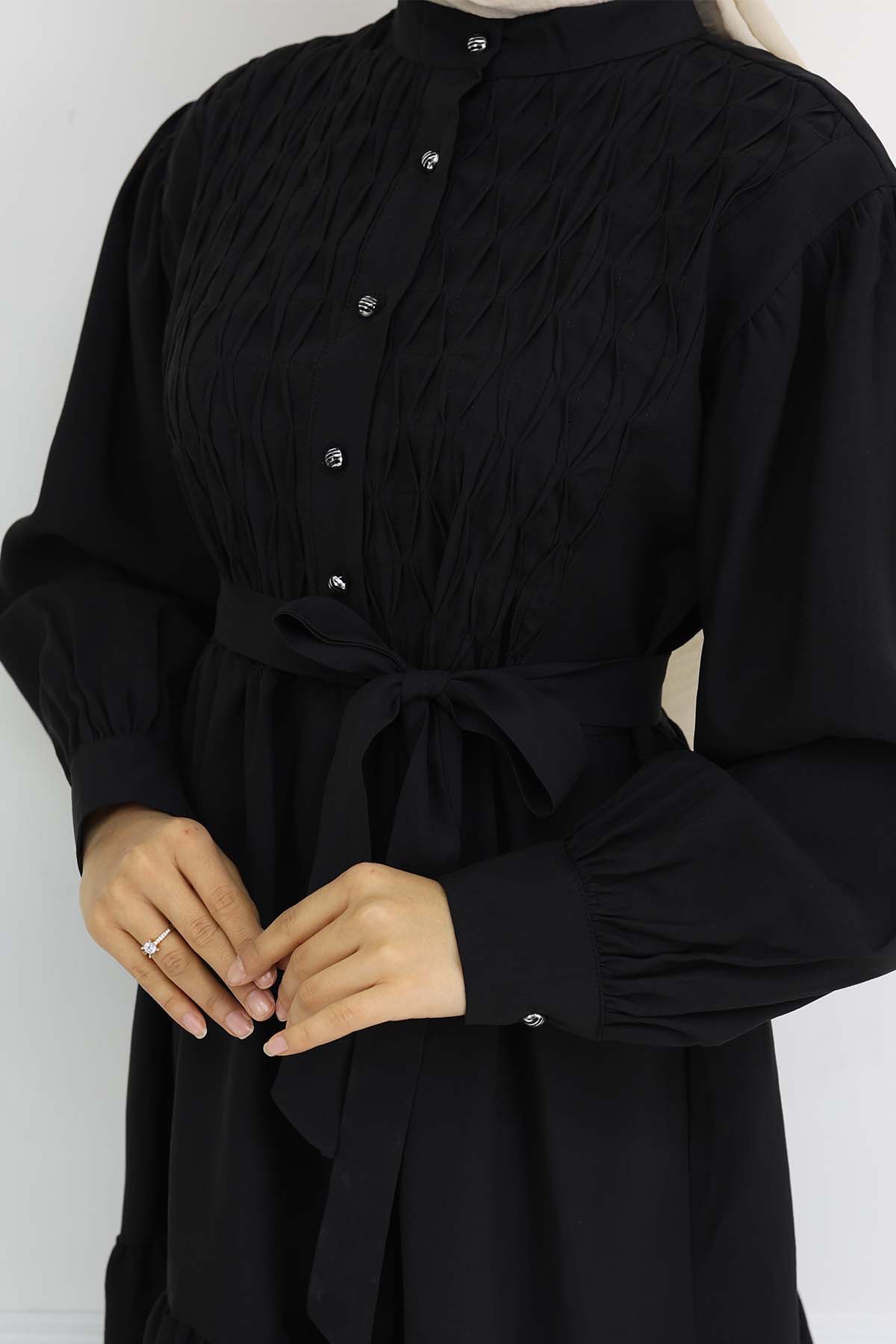 BNG Women Kuşaklı Tesettür Elbise Siyah 2247 - Massa