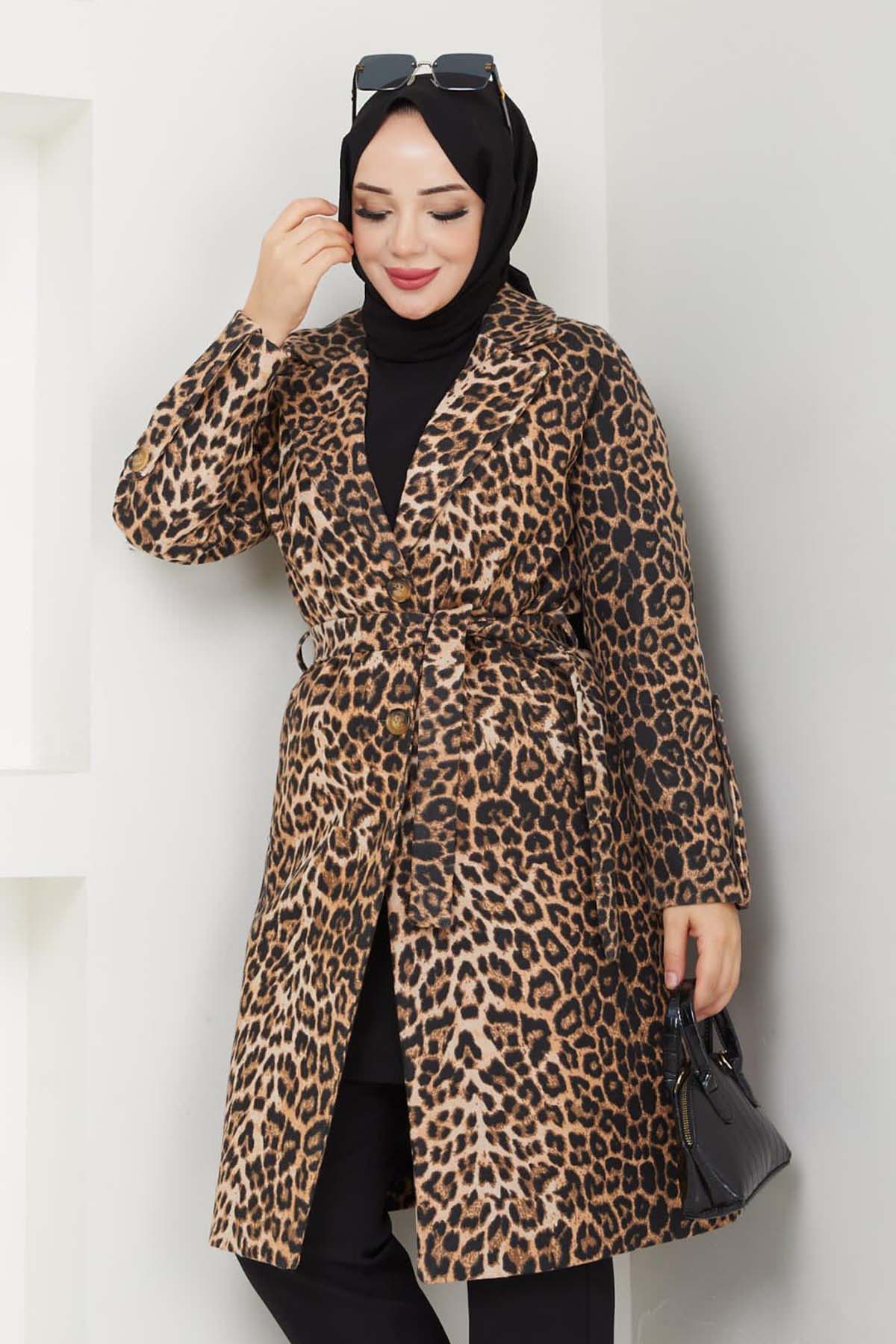 BNG Women Leopar Baskılı Kaşe Kaban Leopar 4911 - Sugar Land