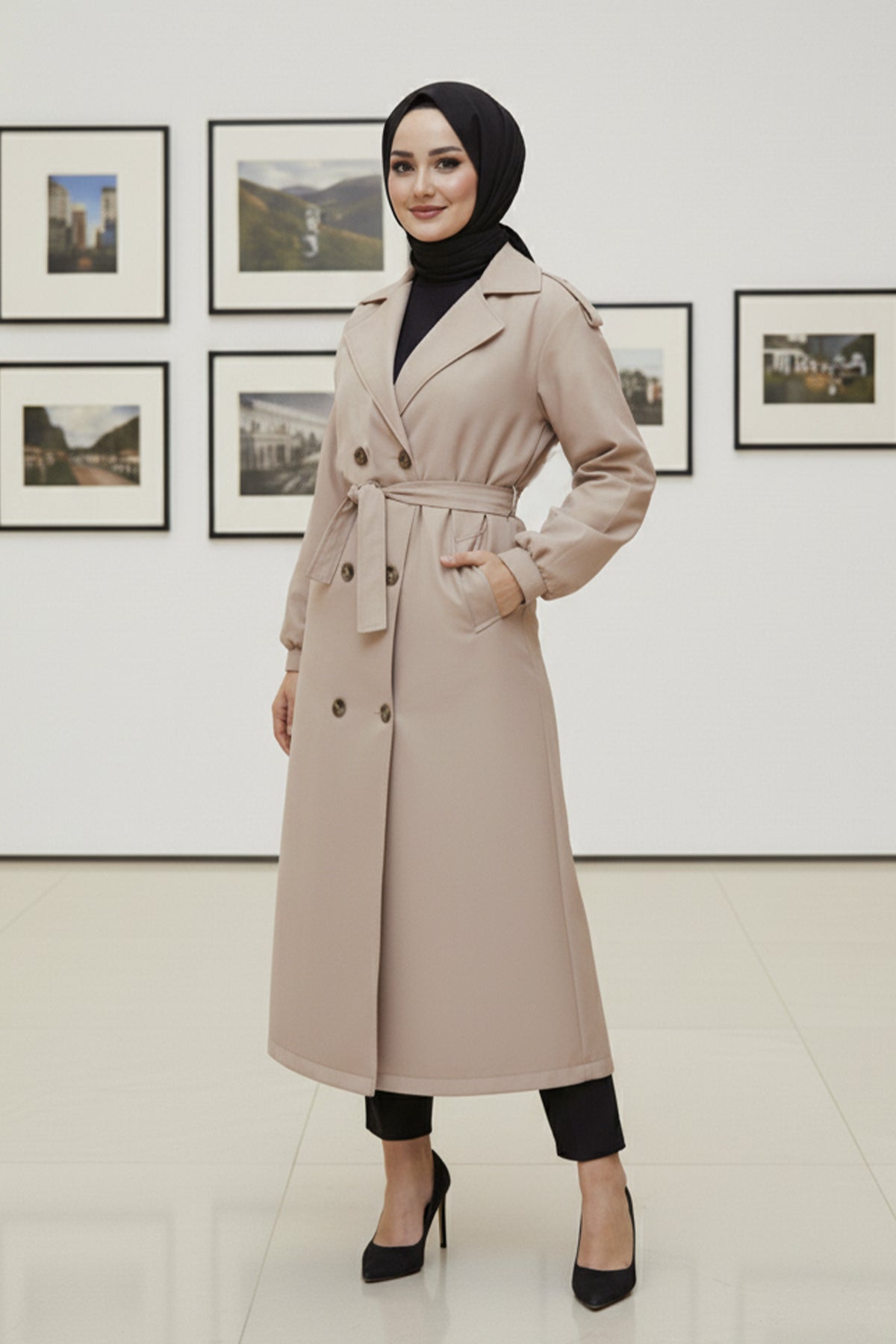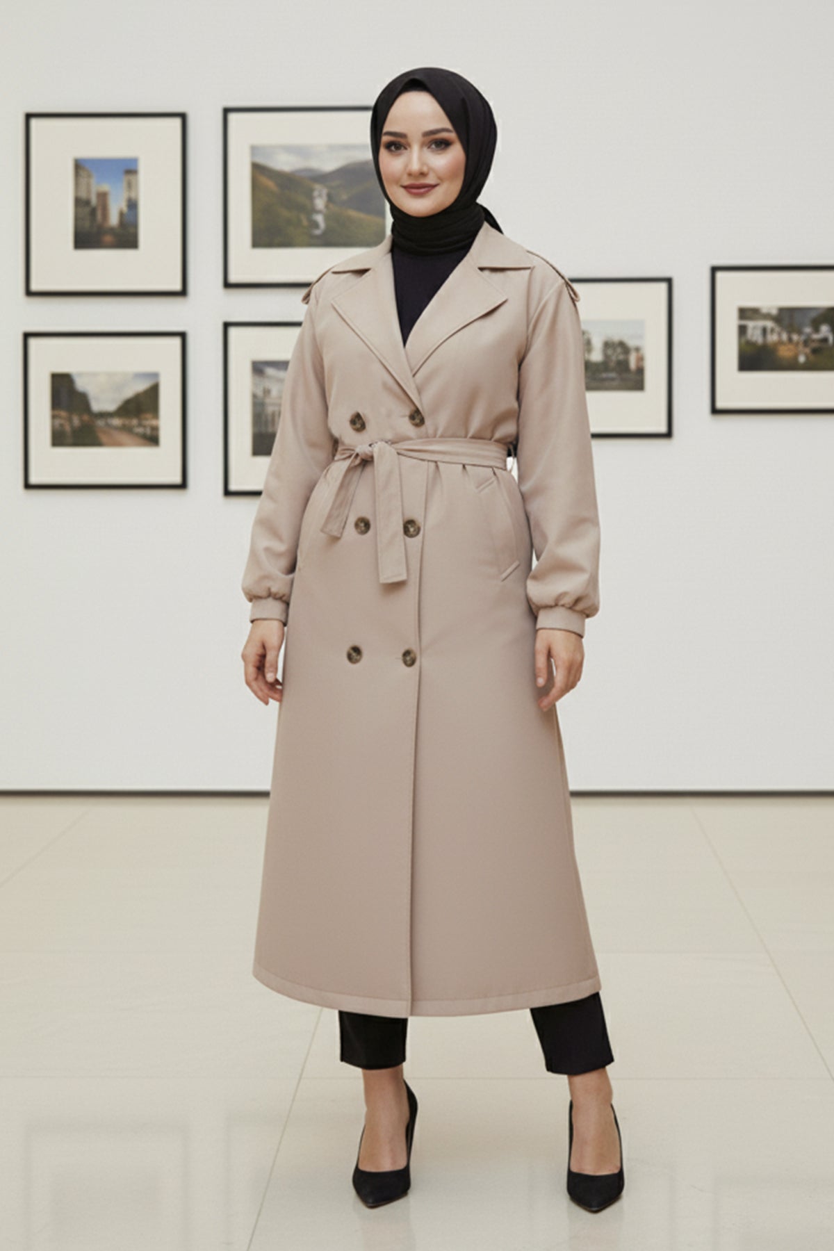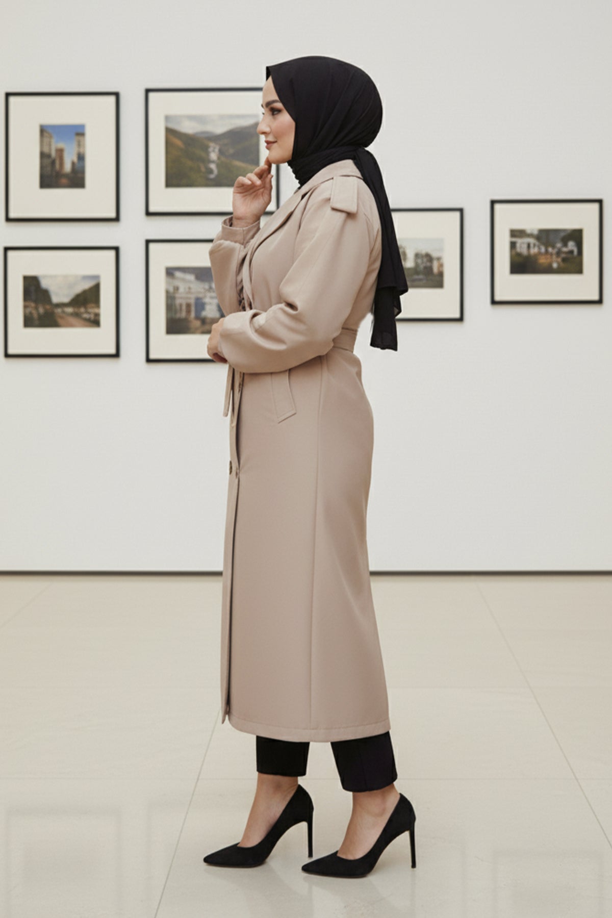 BNG Women Mevsimlik Kuşaklı Trençkot 5854 Bej - Venice