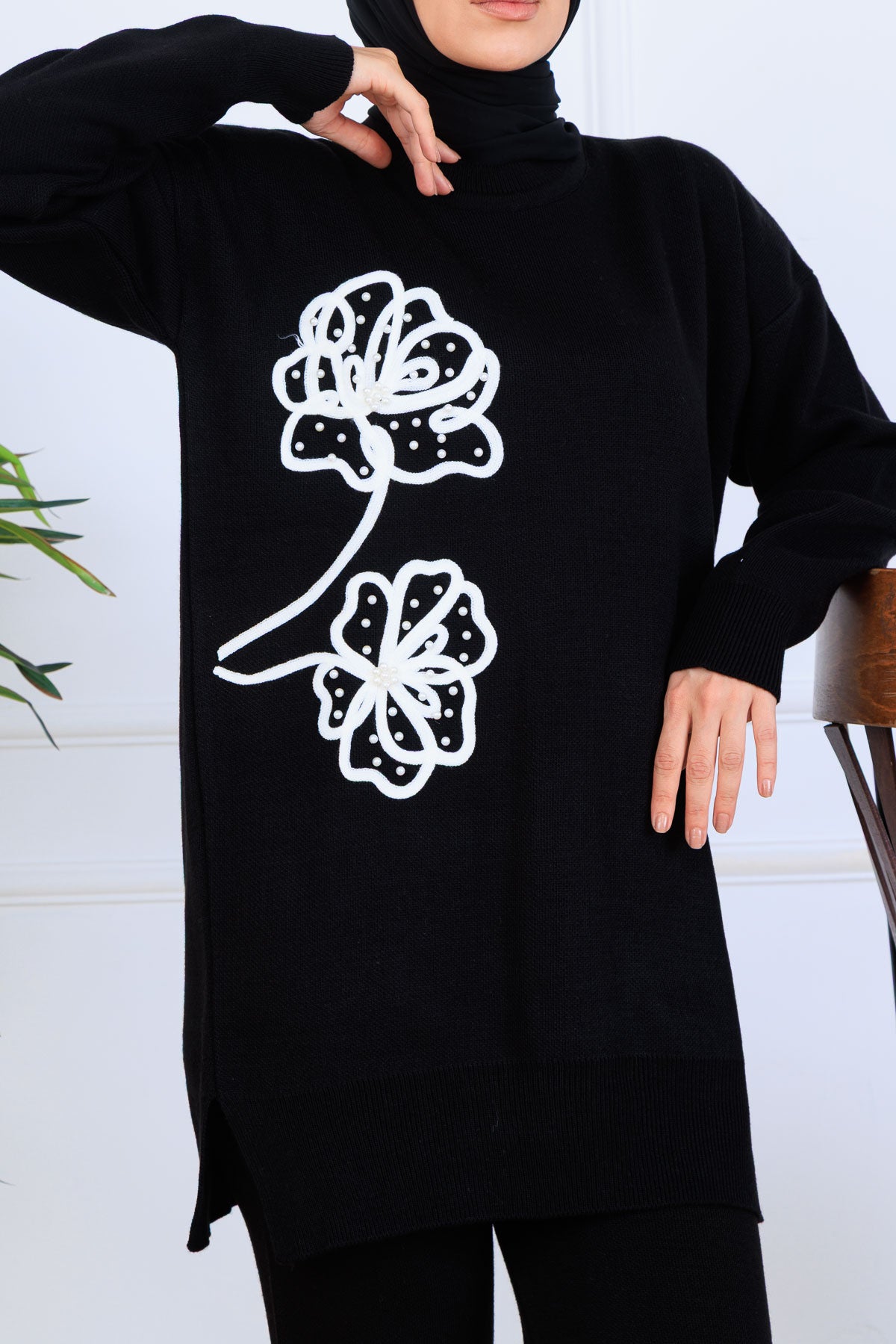 BNG Women Nakış İşleme Detaylı Triko Takım S1120 Siyah - Estepona