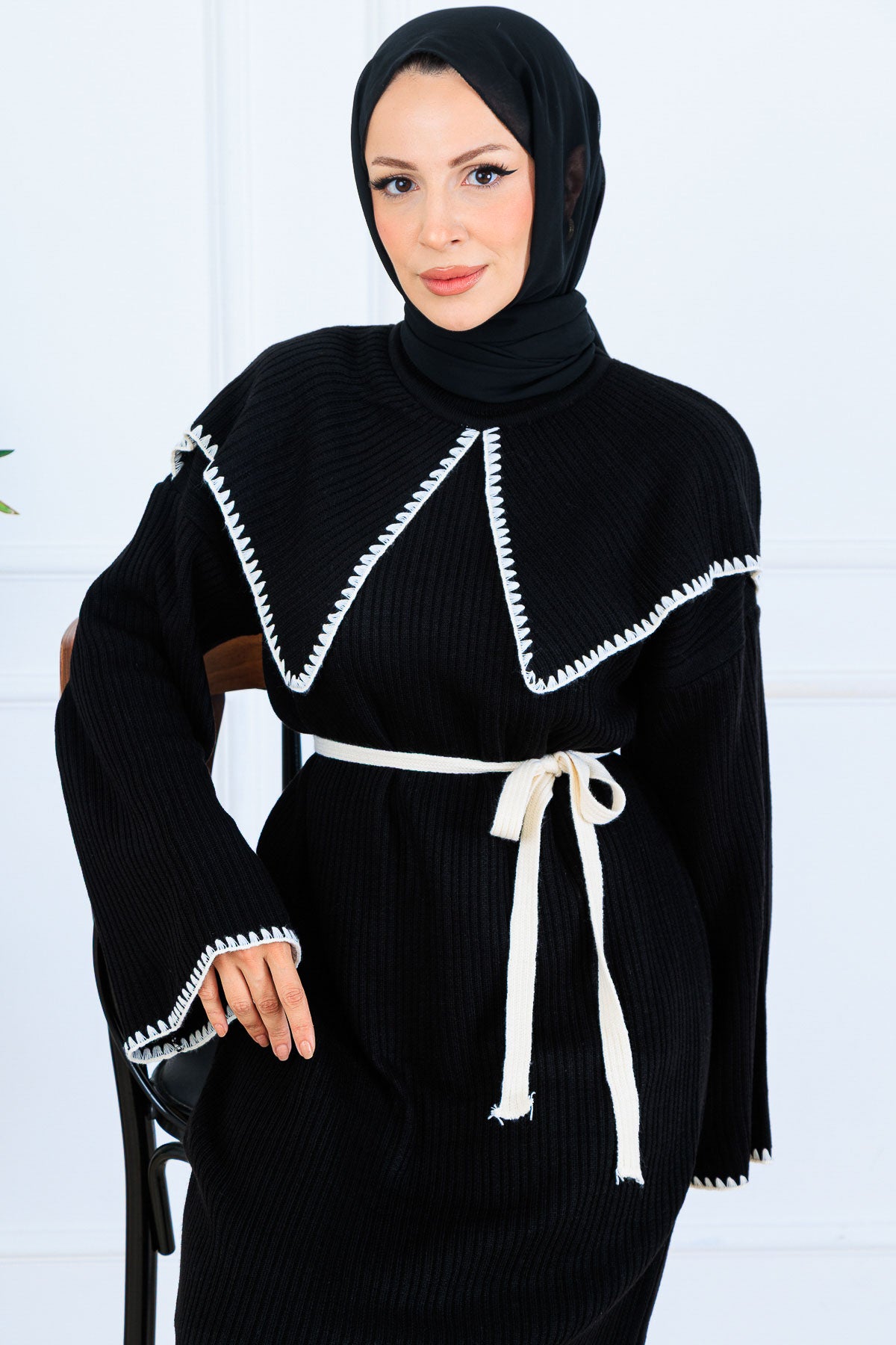 BNG Women Neck Detailed Knit Dress K3036 Black - Osimo