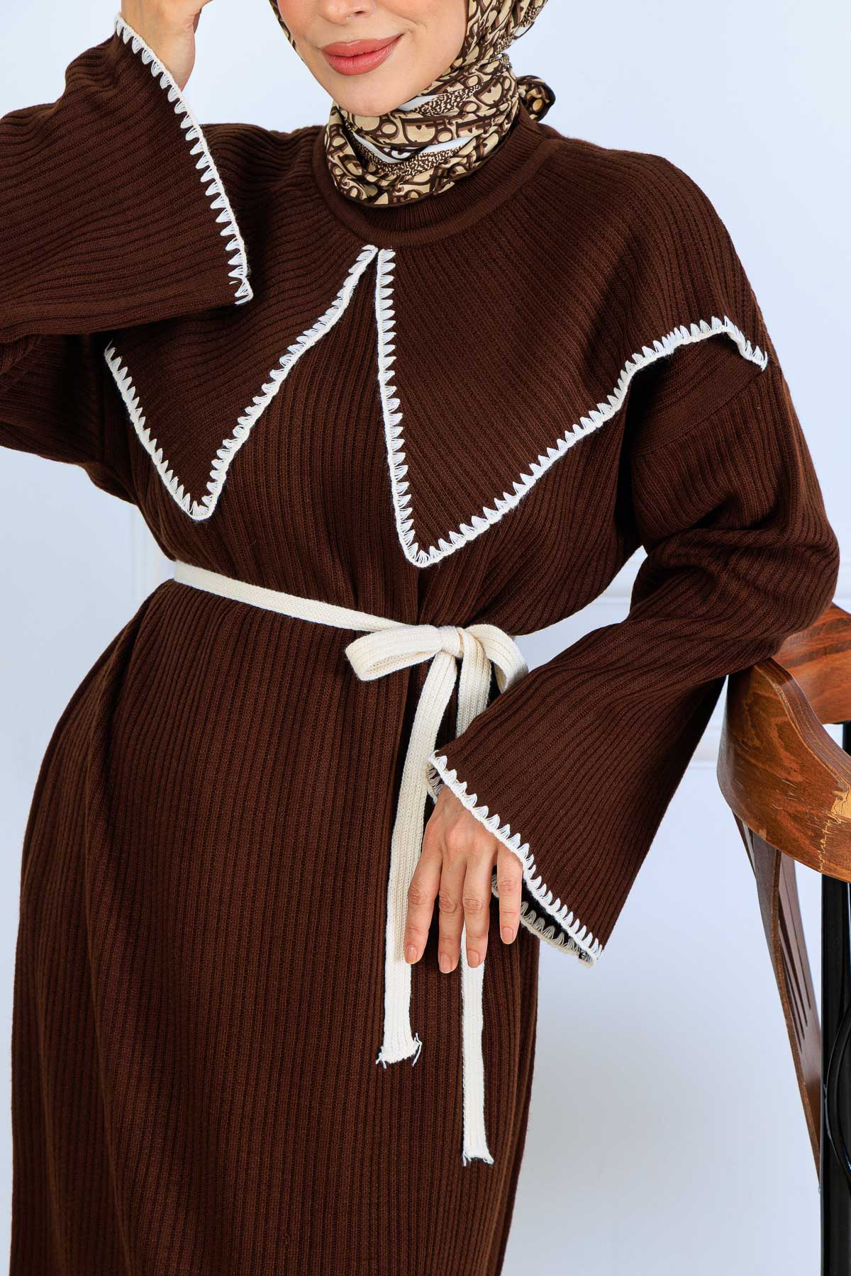 BNG Women Neck Detailed Knit Dress K3036 Brown - Central Islip