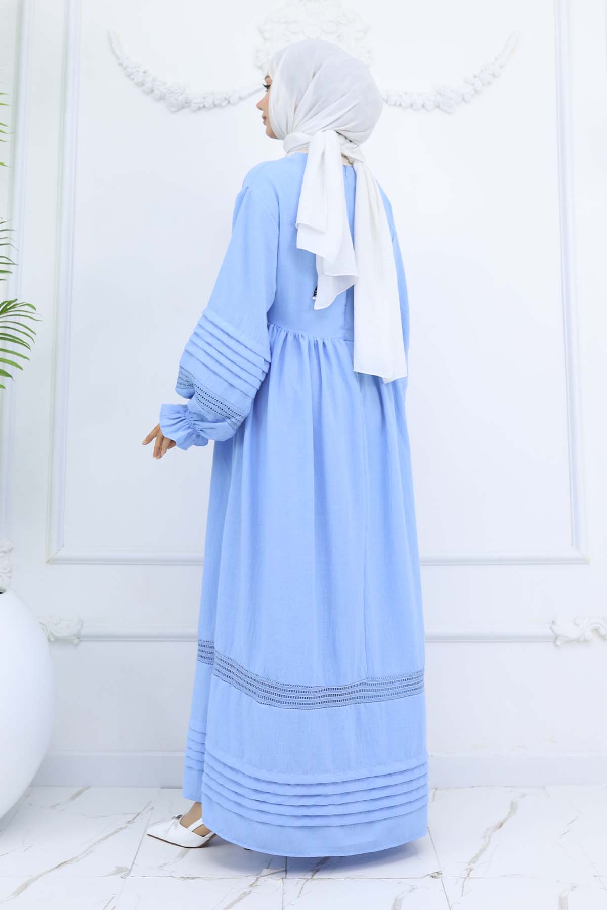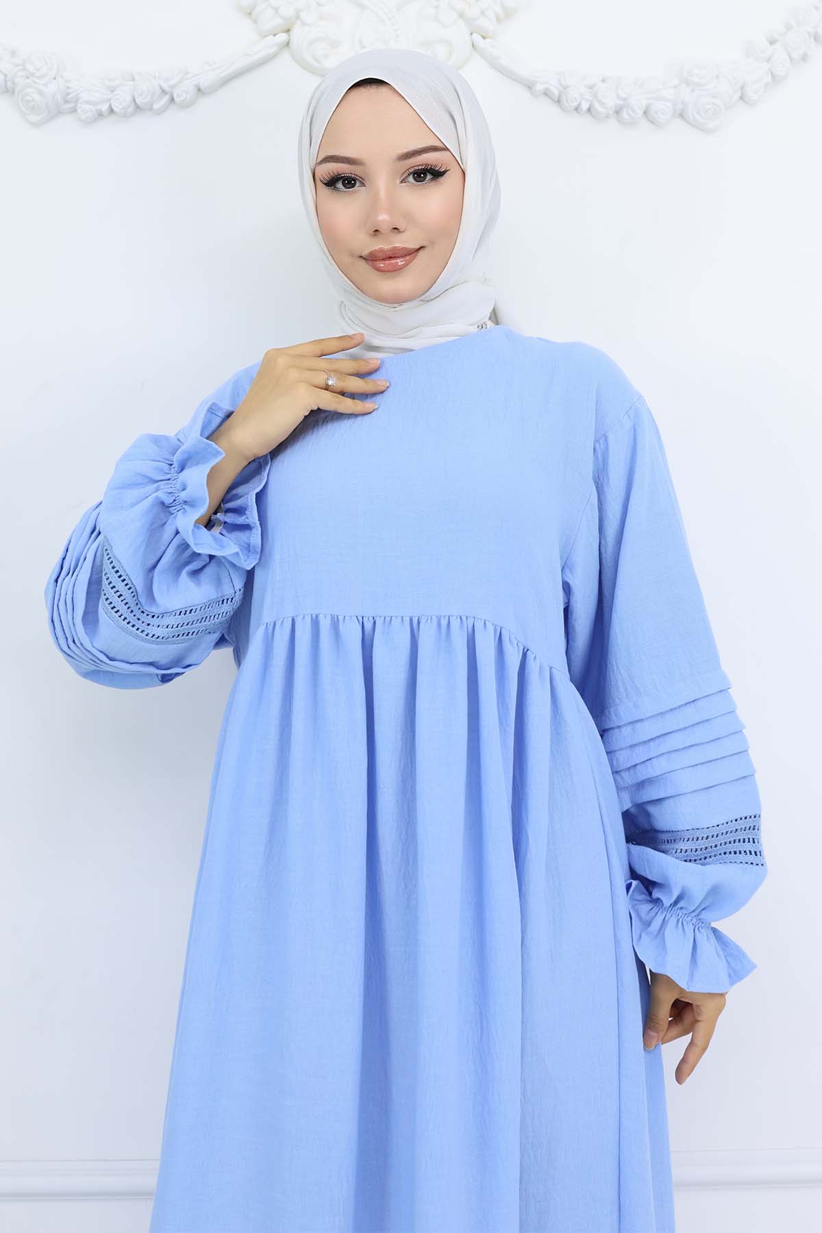 BNG Women Nervür Detaylı Tesettür Elbise Bebe Mavisi 2207 - Milton
