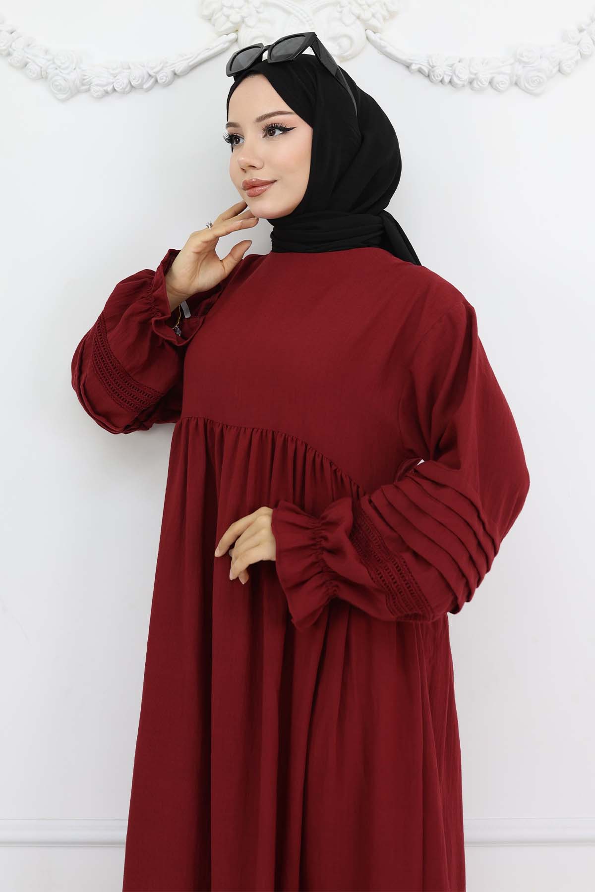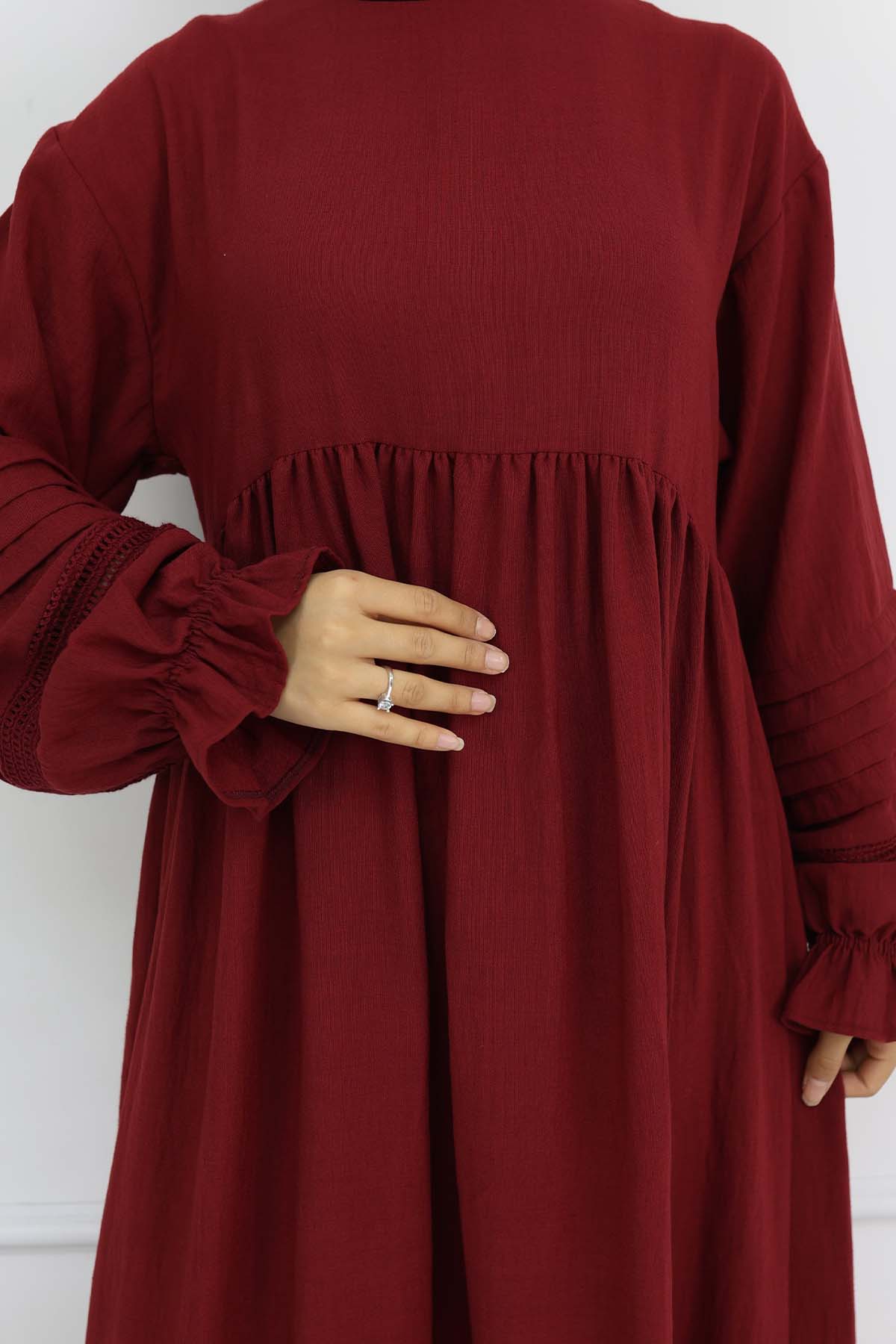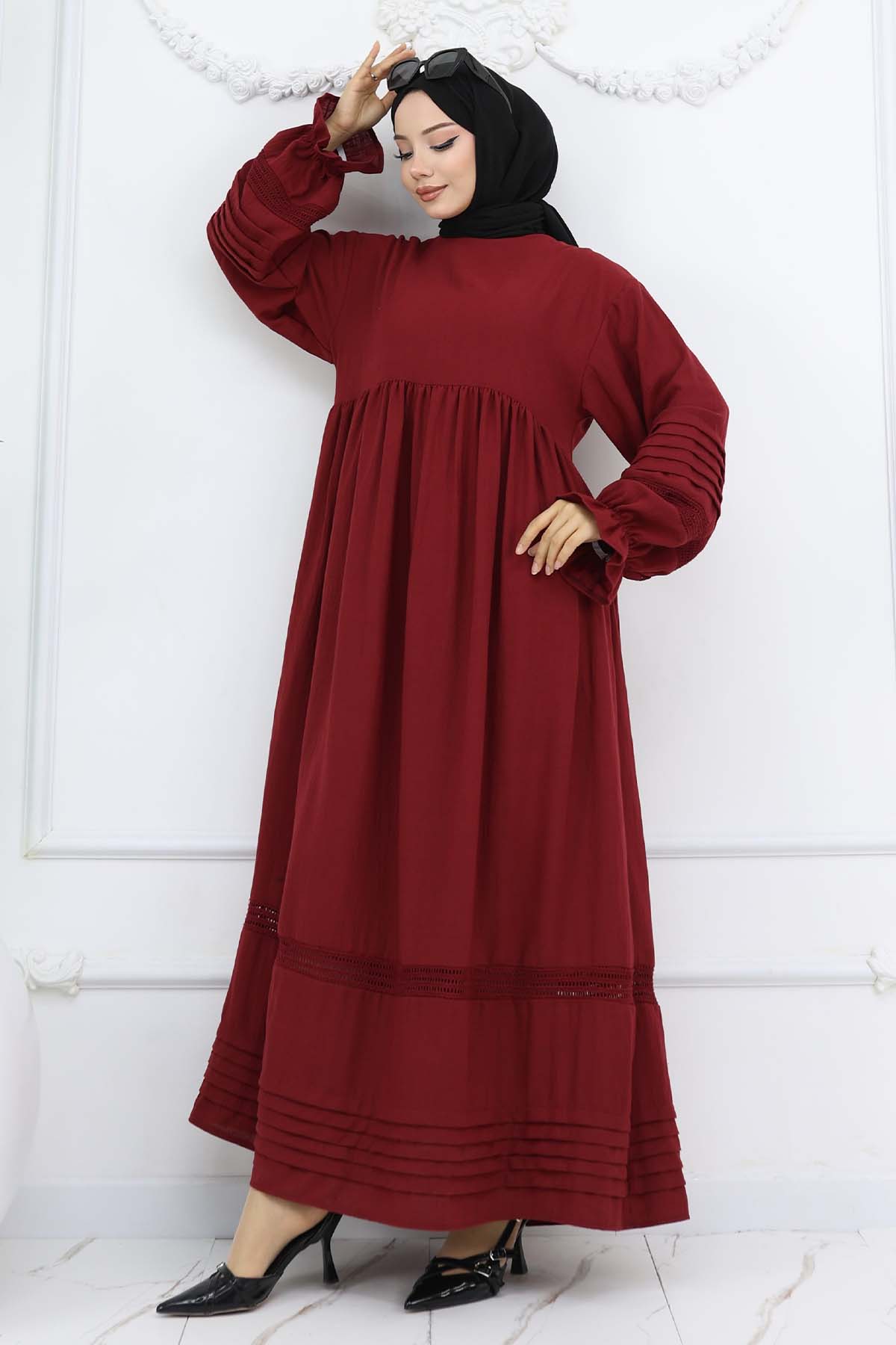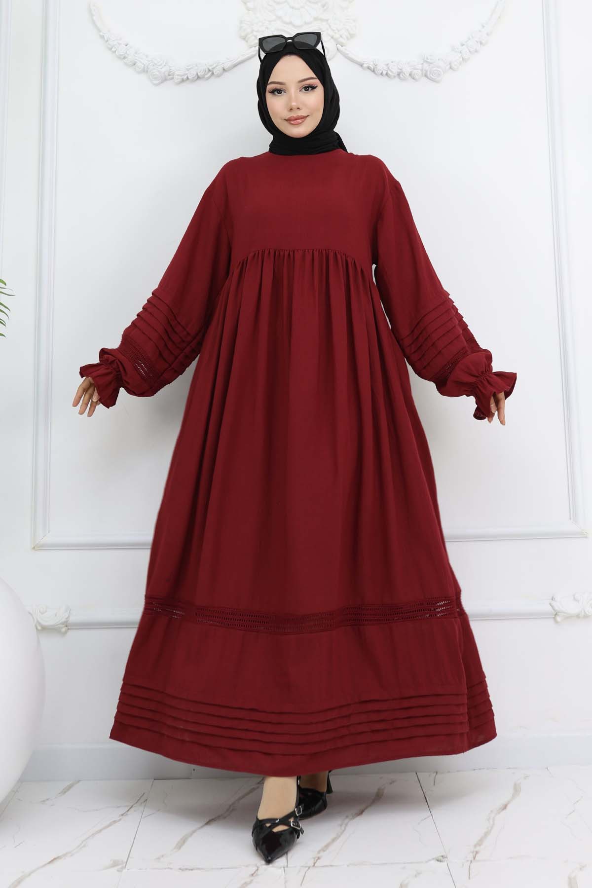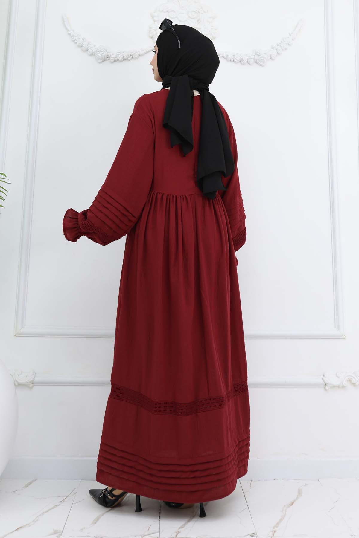 BNG Women Nervür Detaylı Tesettür Elbise Bordo 2207 - Frontera