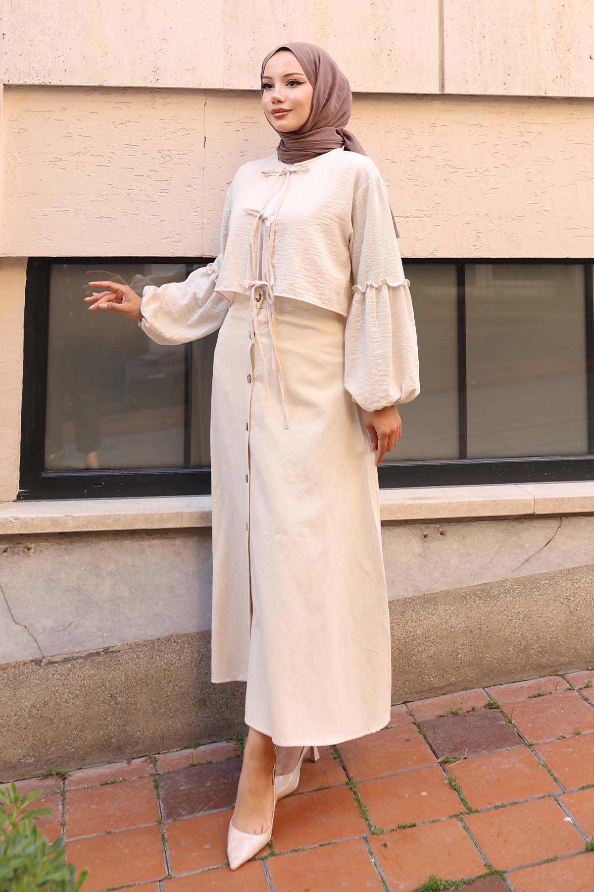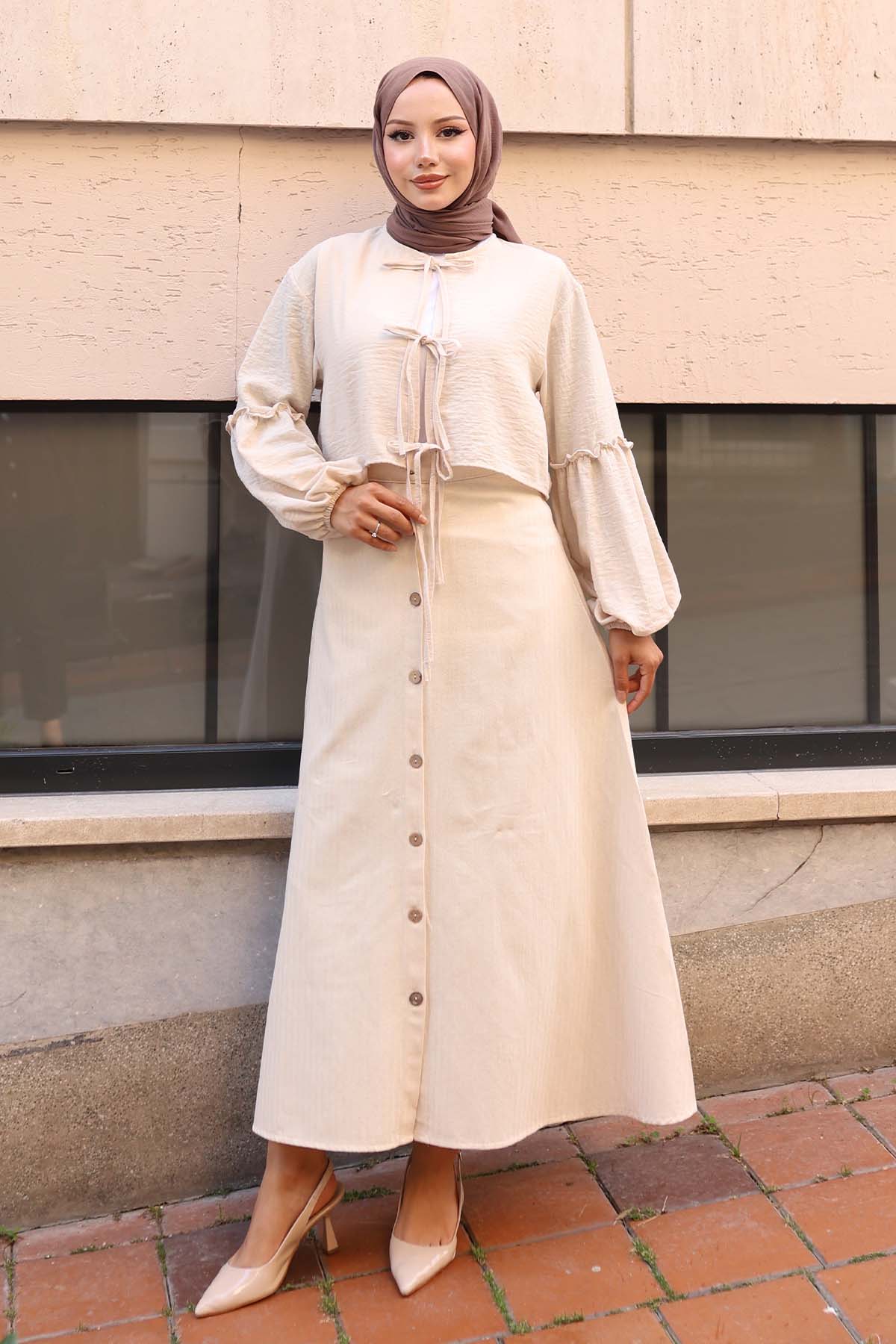 BNG Women Önden Düğmeli Keten Etek Taş Rengi 8046 - Casalnuovo di Napoli