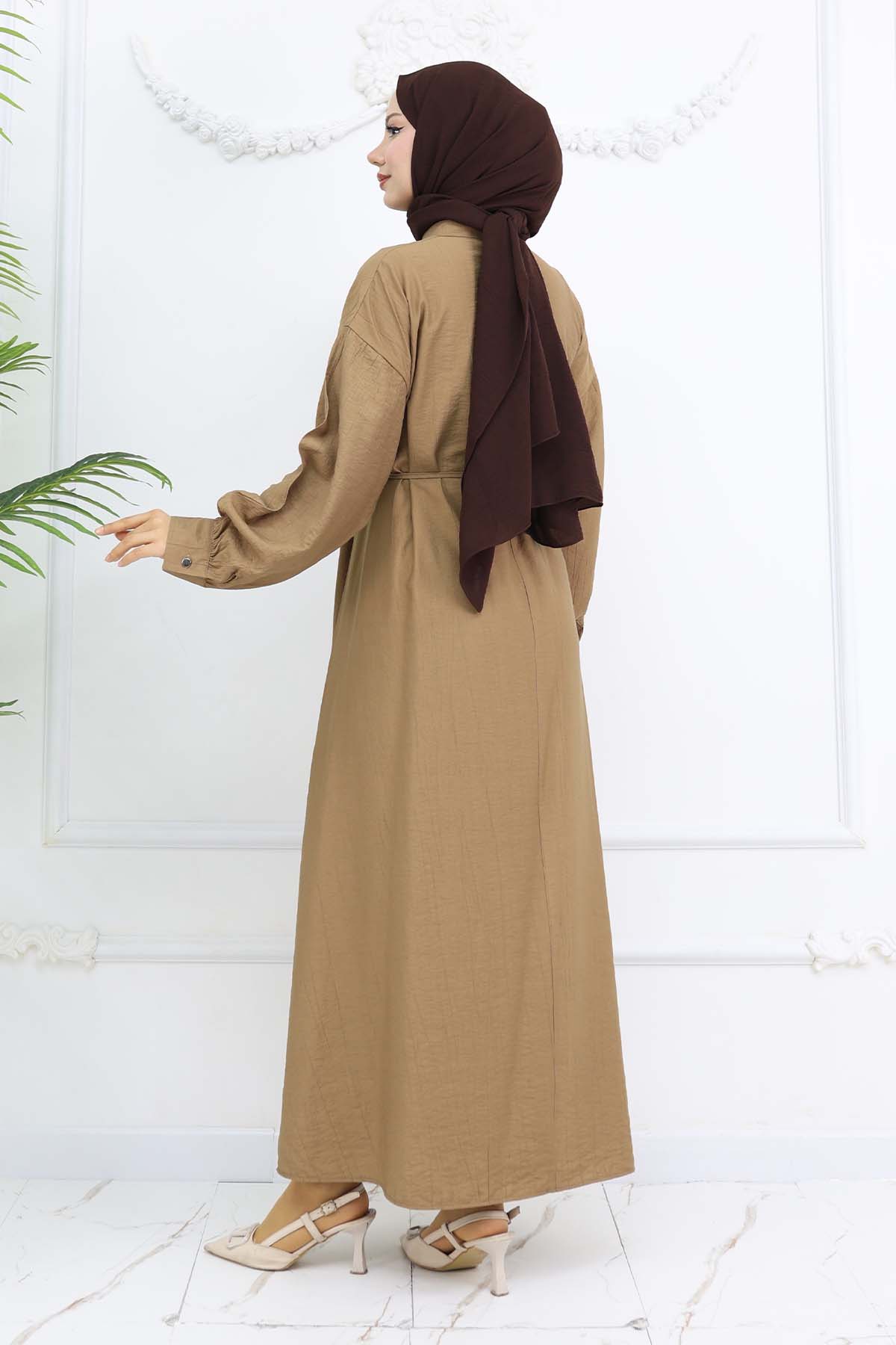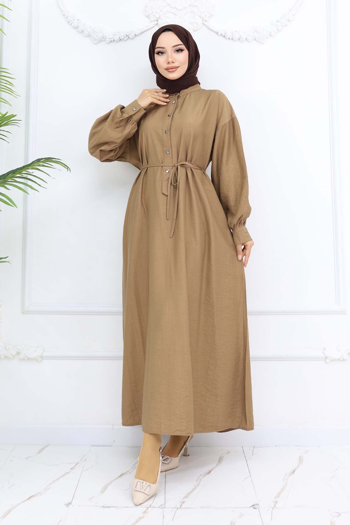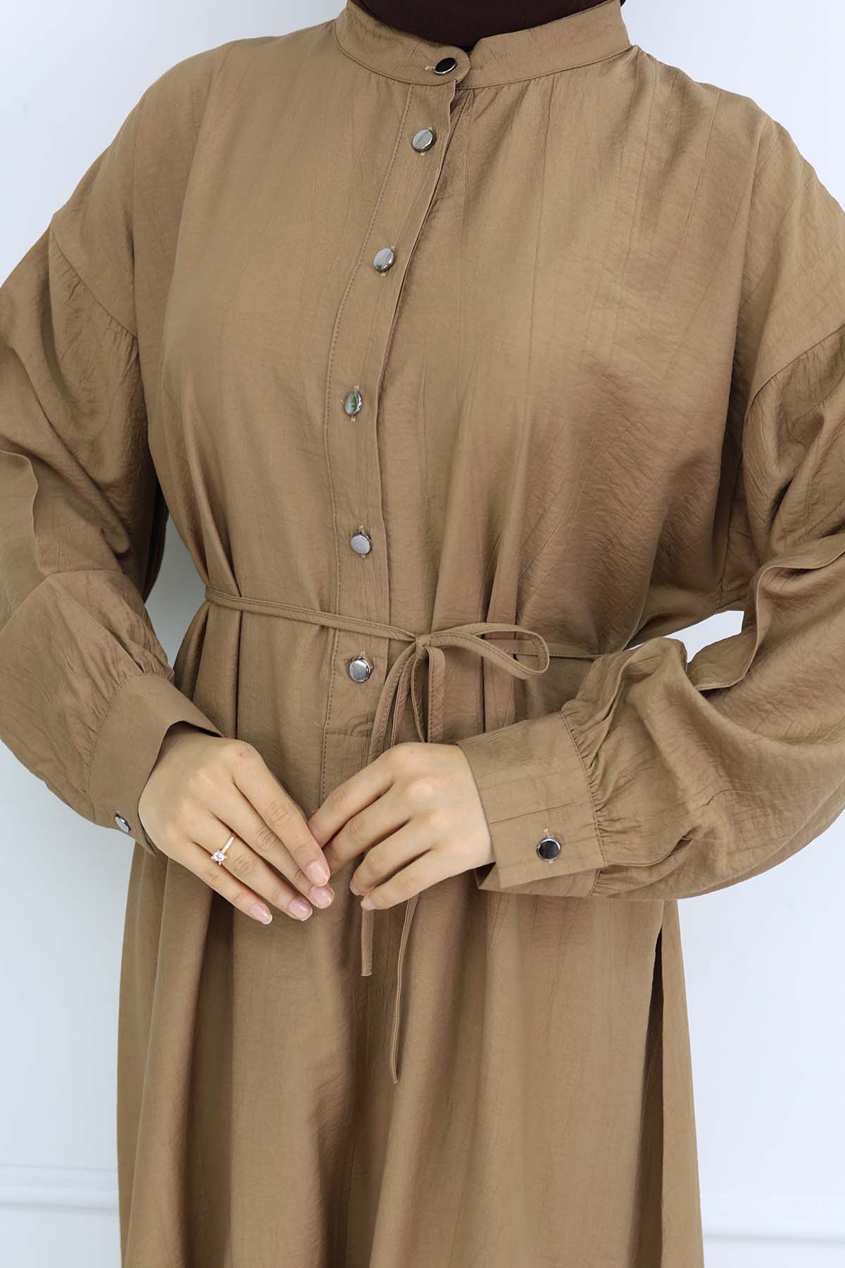 BNG Women Önü Düğmeli Bağlamalı Elbise Vizon 2242 - Datteln