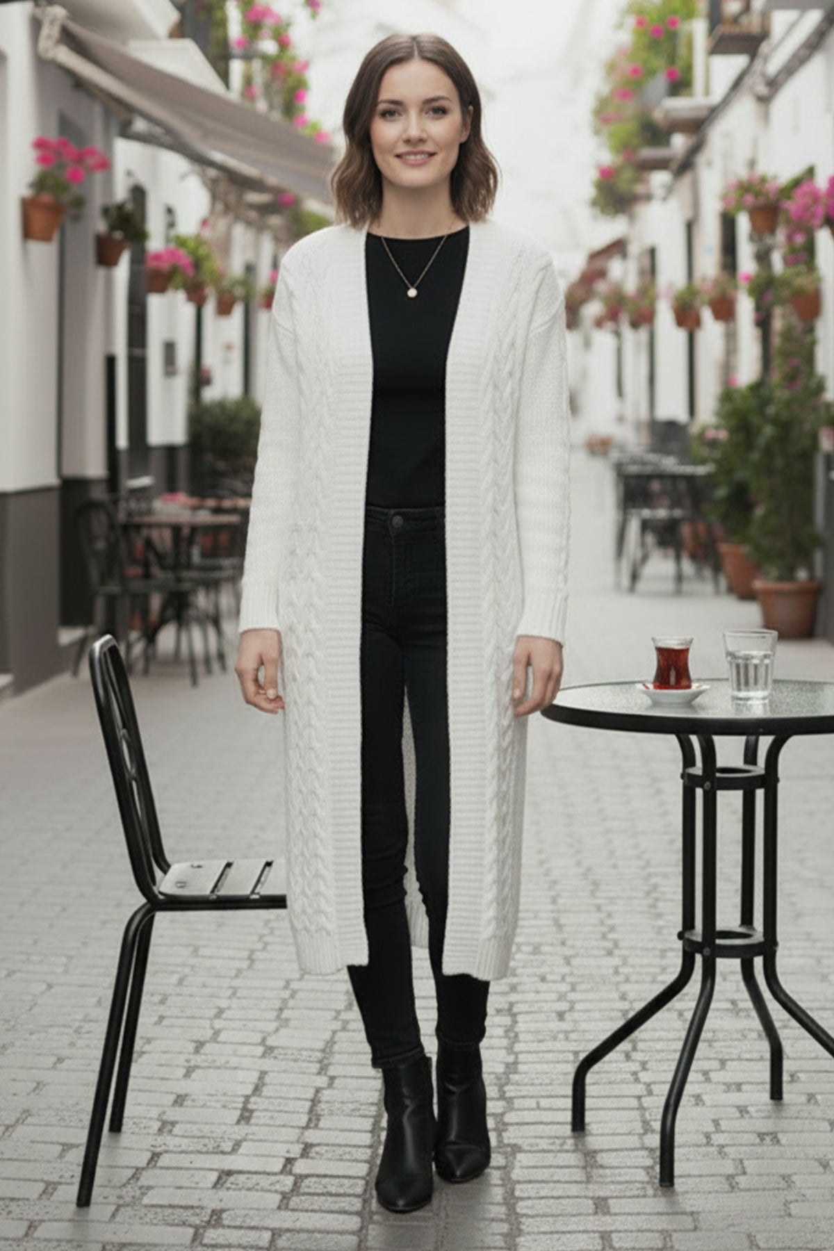 BNG Women Örgü Desenli Uzun Triko Hırka R4251 Ekru - Horad Zhodzina