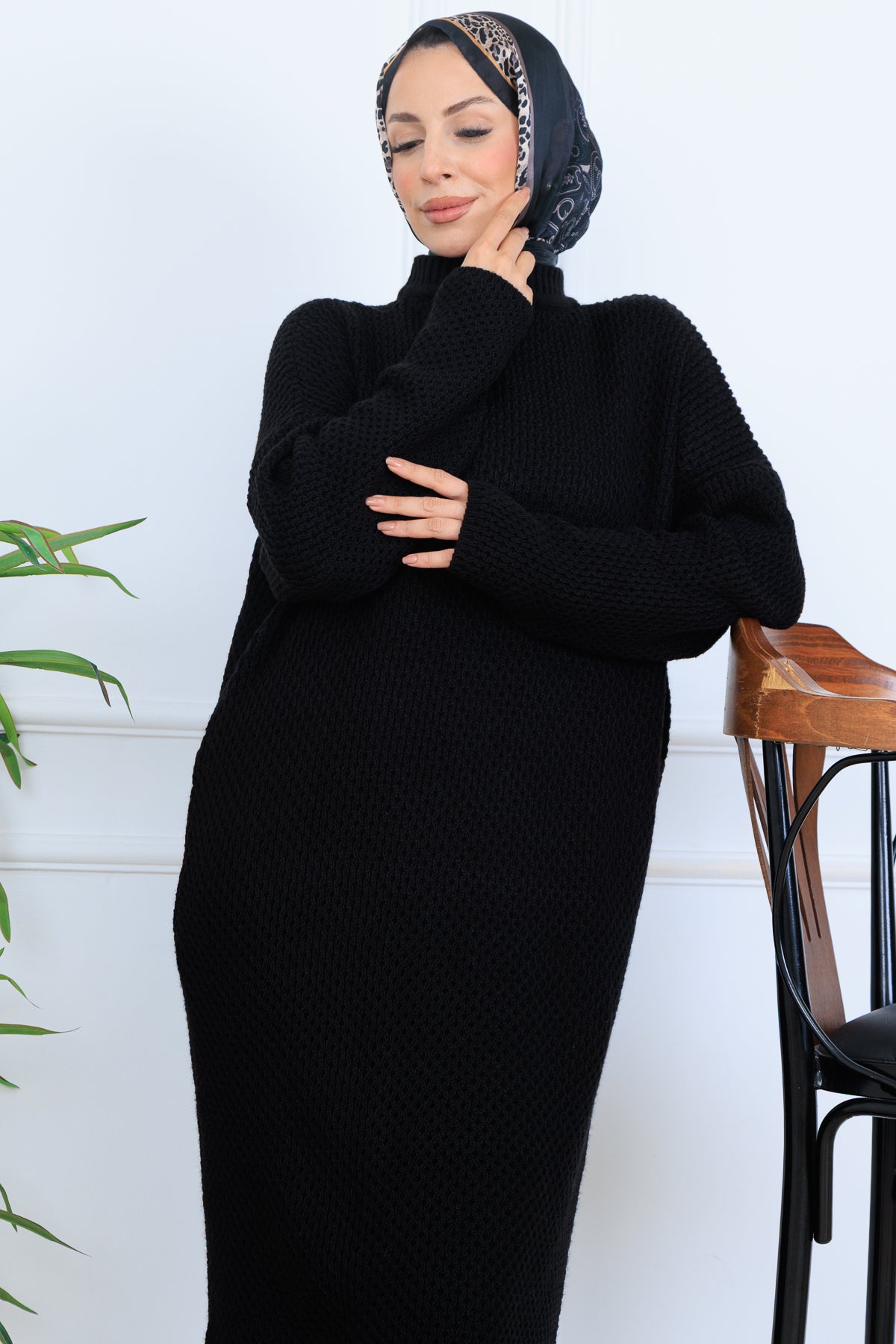 Product Information: Dress Length: 137 cm, Bust: 122 cm, Hips: 106 cm. Fabric Type: 100% Acrylic Fabric. Model Measurements: Height: 168 cm, Bust: 83 cm, Waist: 68 cm, Hips: 90 cm. The product on the model is in Standard Size. It is compatible with sizes 36-44. There may be a slight color difference due to concept shootings in the product color.