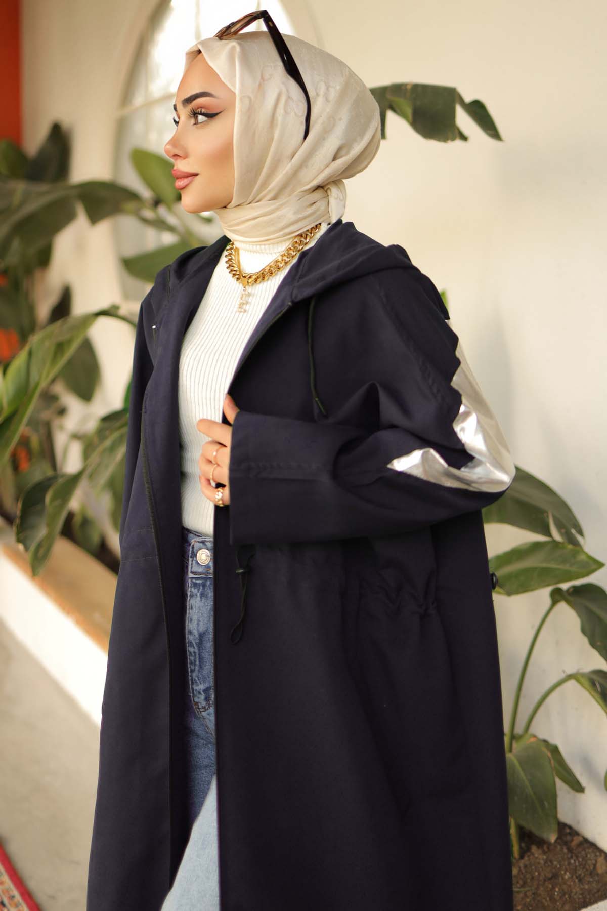 BNG Women Parlak Kol Detaylı Trençkot Lacivert 61658 - Acámbaro