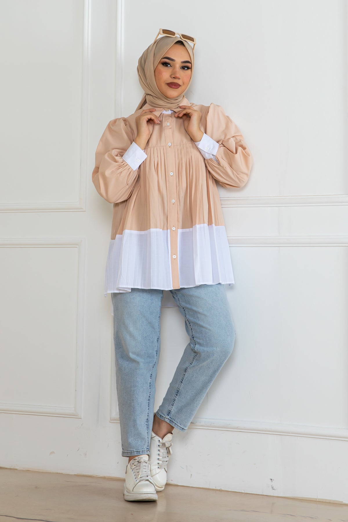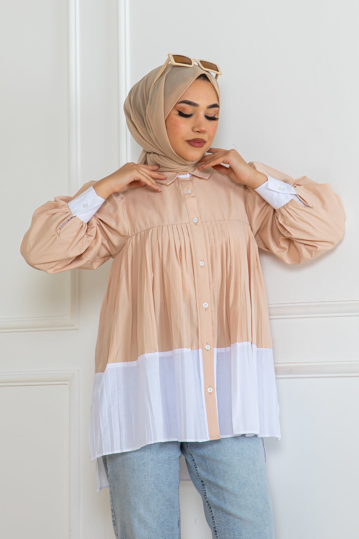 BNG Women Pileli Gömlek Bej 2131 - Brossard