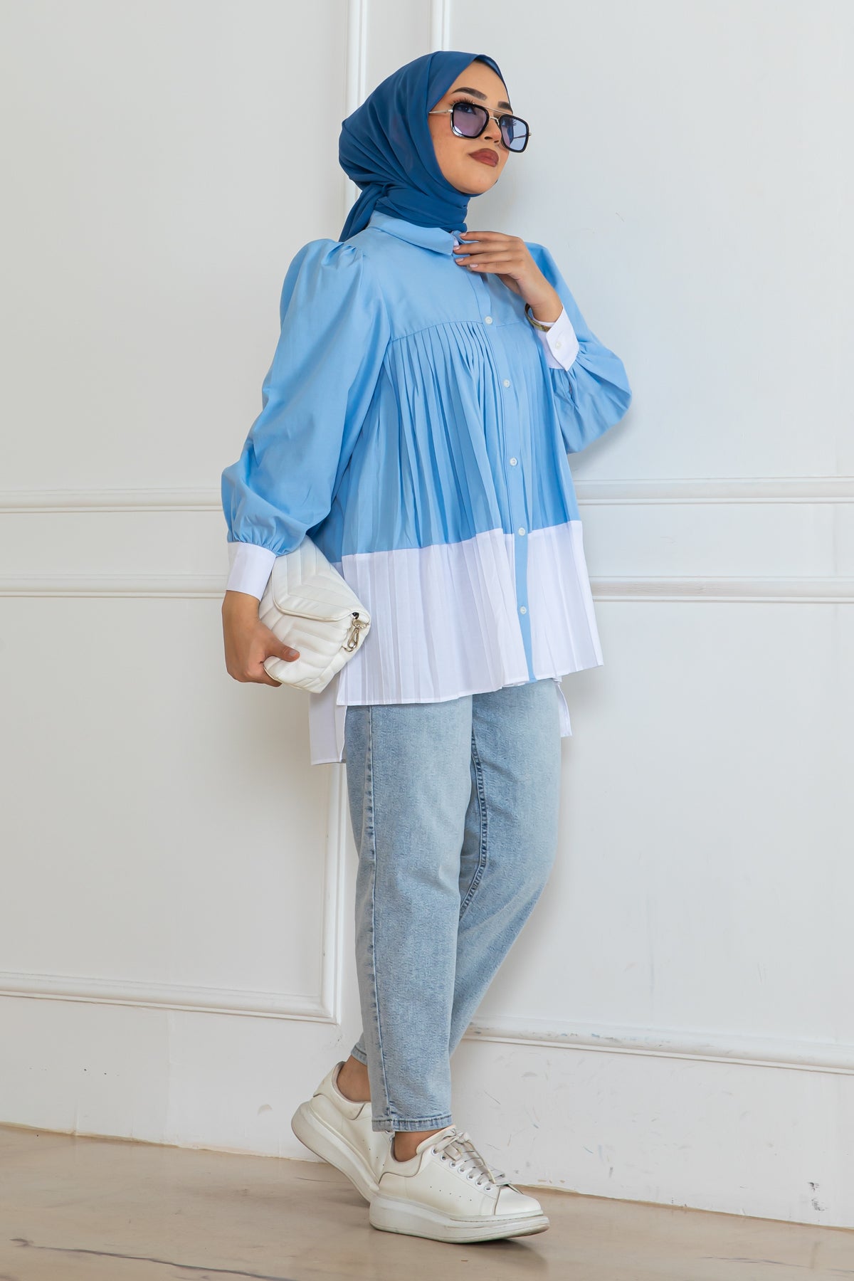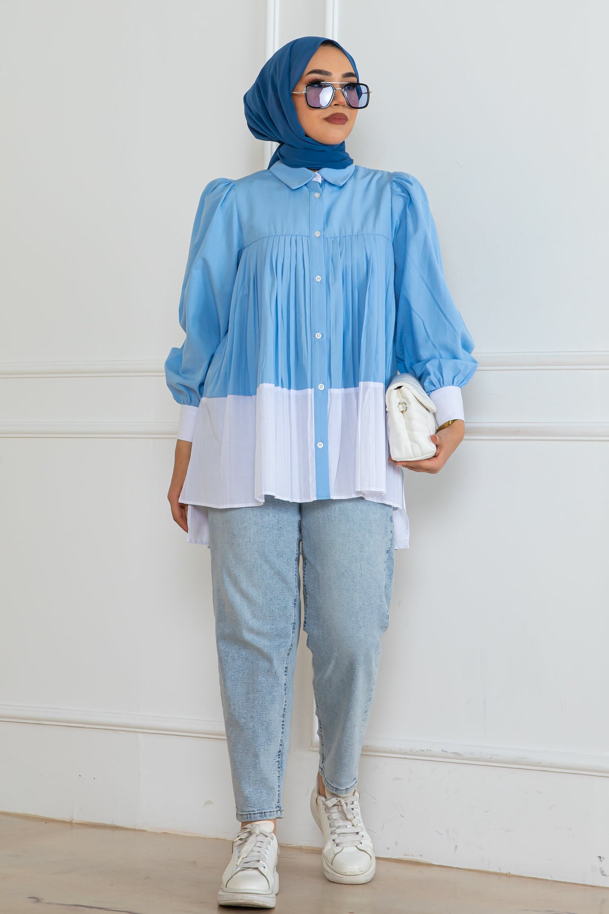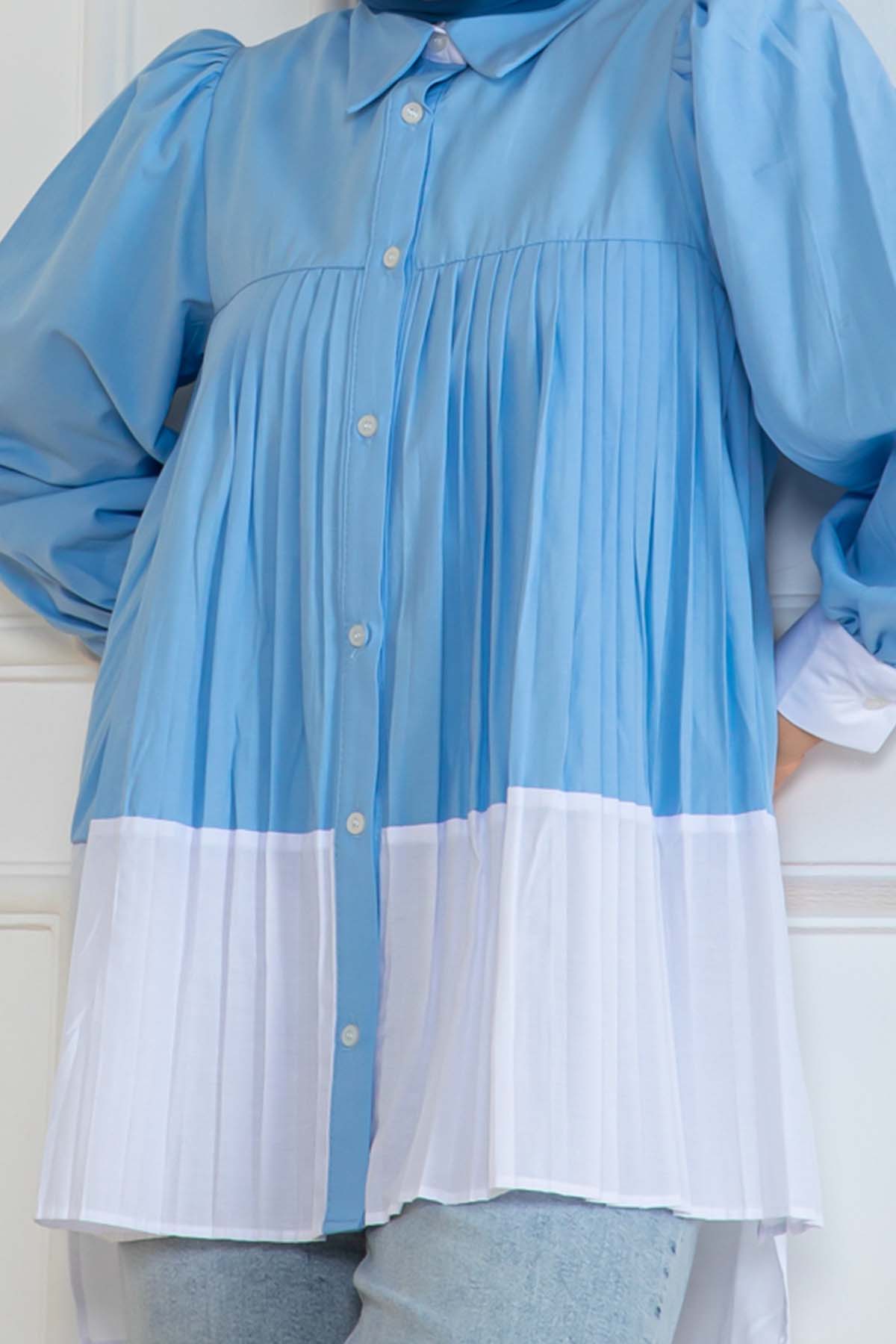 BNG Women Pileli Gömlek Mavi 2131 - Evans