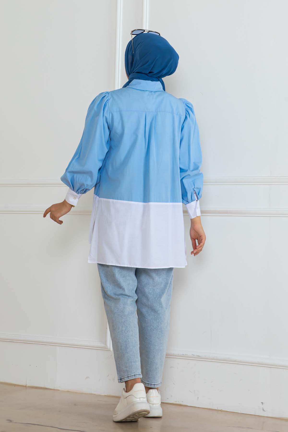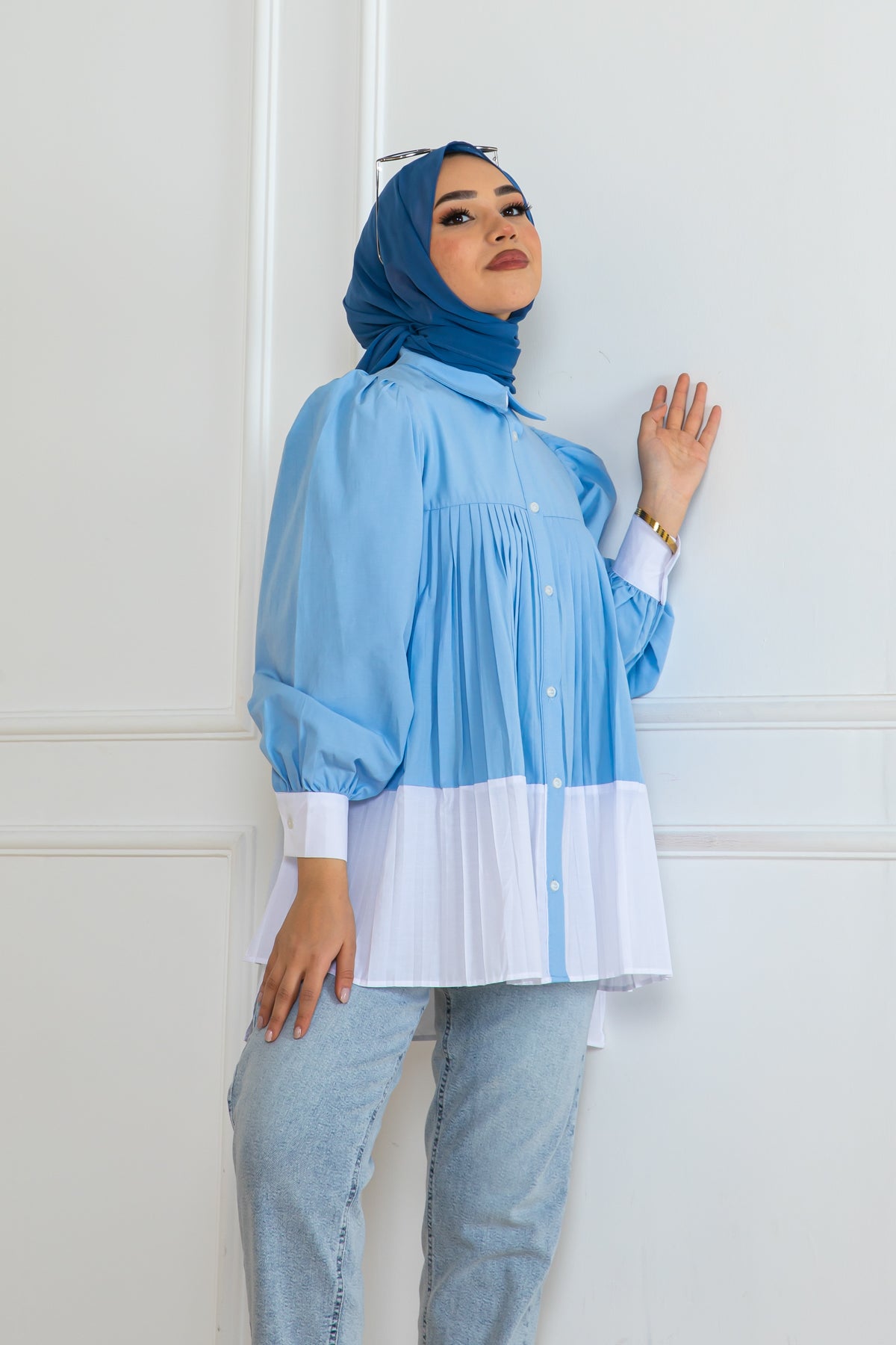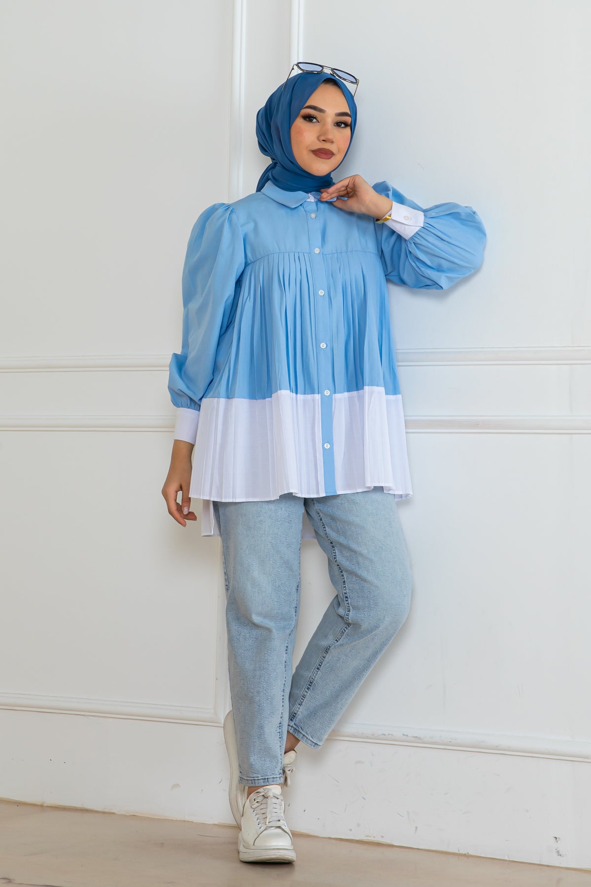 BNG Women Pileli Gömlek Mavi 2131 - Evans