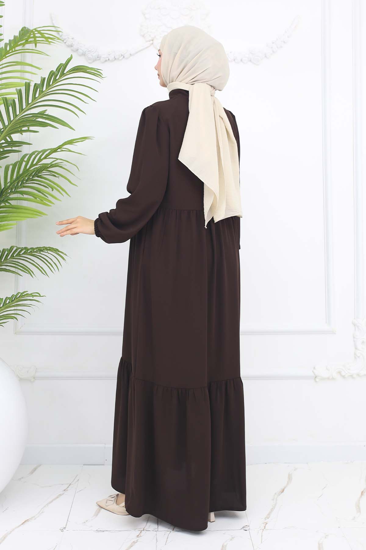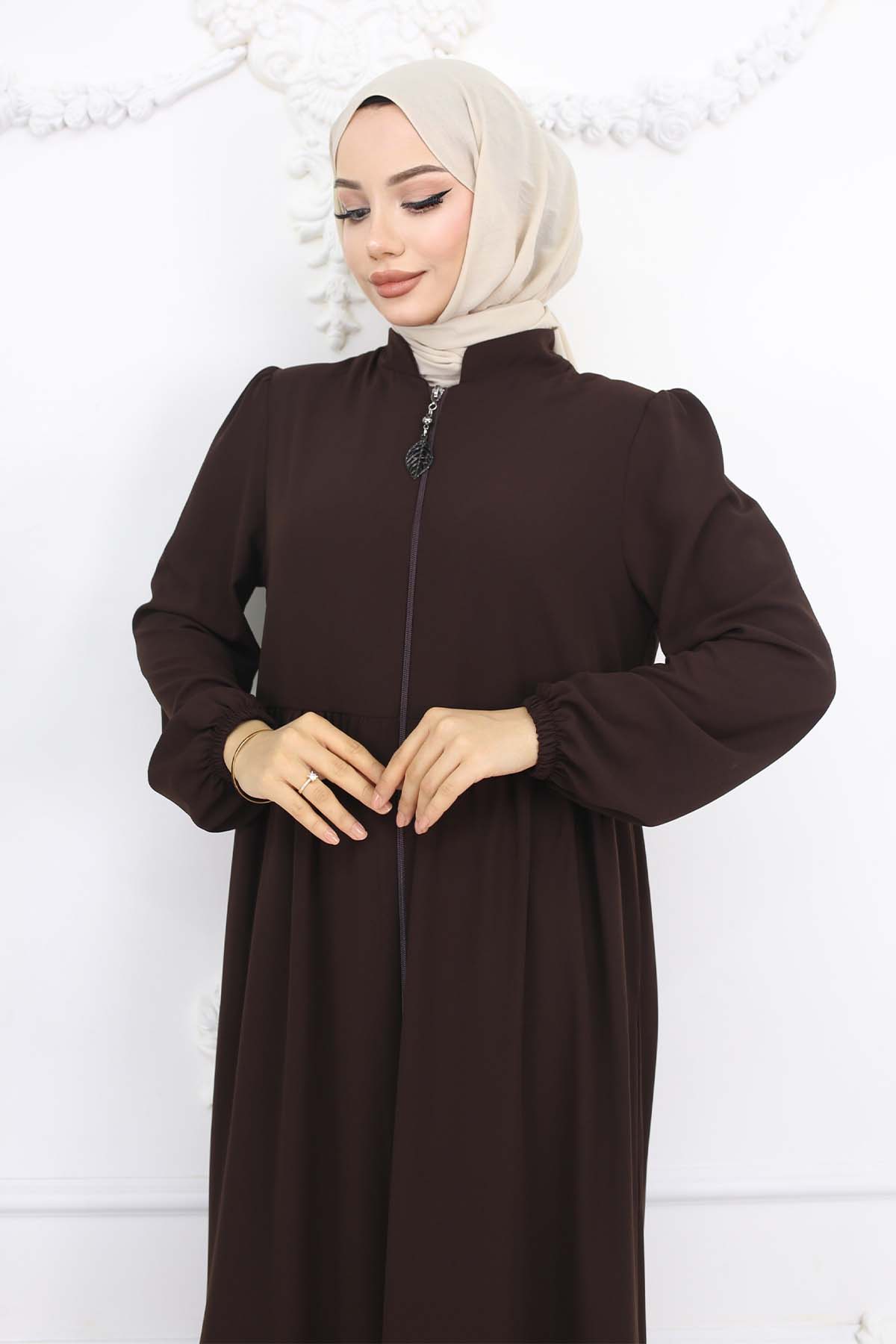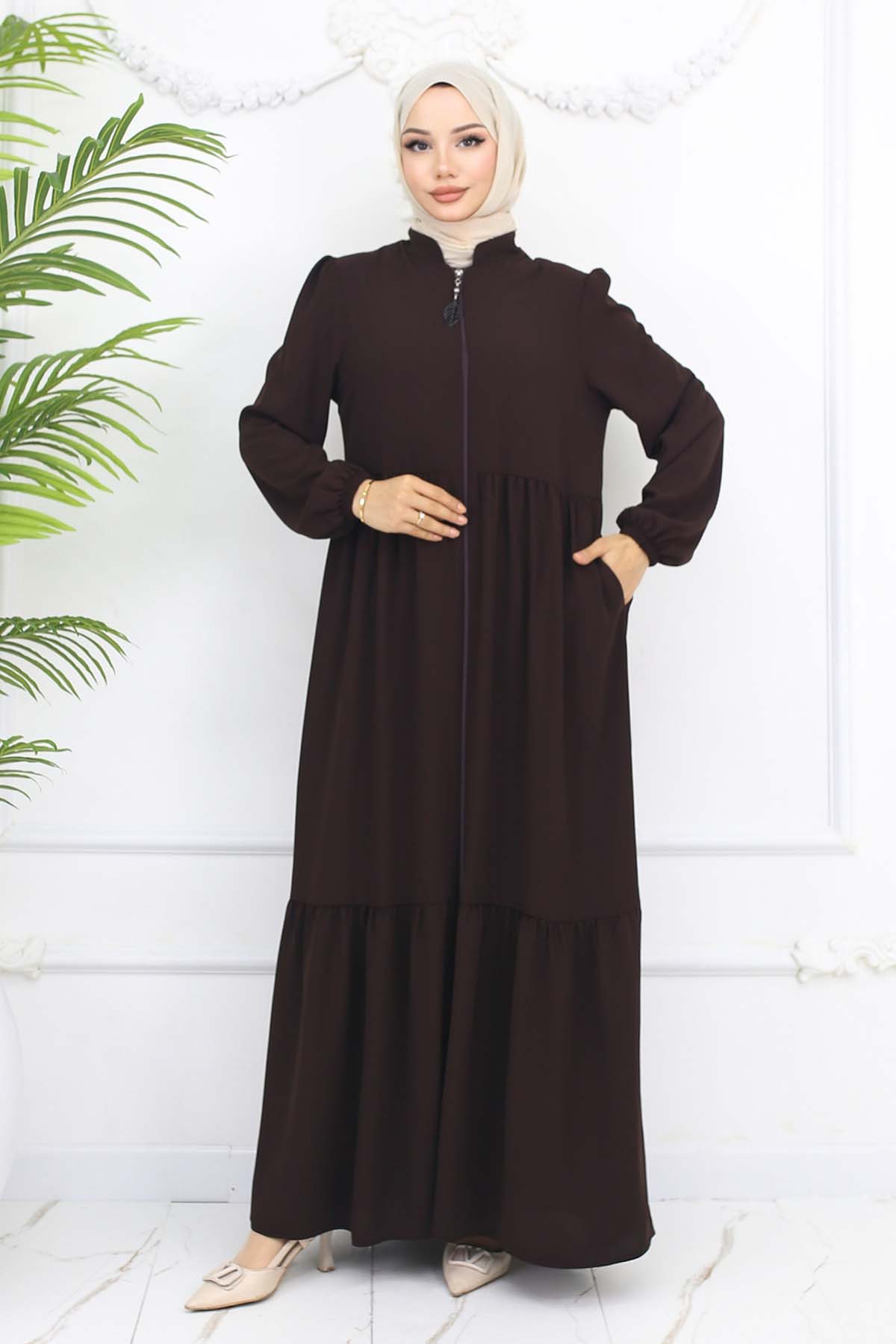BNG Women Pleated Detailed Zippered Ferace Brown 1008 - Fayetteville