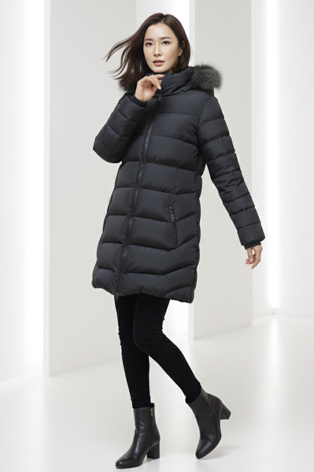 BNG Women Şapkası Kürklü Mont K9182 Siyah - Dublin