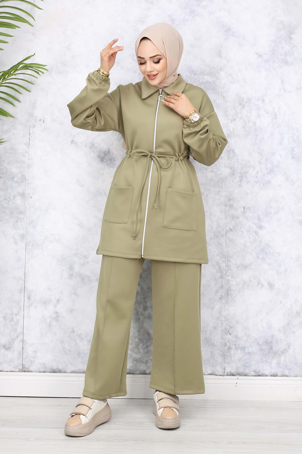 Ürün Özelliği: Ürün normal kalıptır bedeninizi alabilirsiniz.Ürün Bilgisi: Ceket Boy: 82 cm Göğüs: 106 cm Bel: 98 Pantolon Boy: 99 Bel: 76 Basen: 110. Kumaş türü: %50 Viskon %45 Polyester %5 Likra Kumaş. Manken Ölçüleri: Boy: 162 cm, Göğüs: 86 cm, Bel:69 cm, Basen:89 cm. Mankenin üzerindeki ürün: 38/M Bedendir. Ürün renginde konsept çekimlerinden dolayı ton farklılığı olabilir.