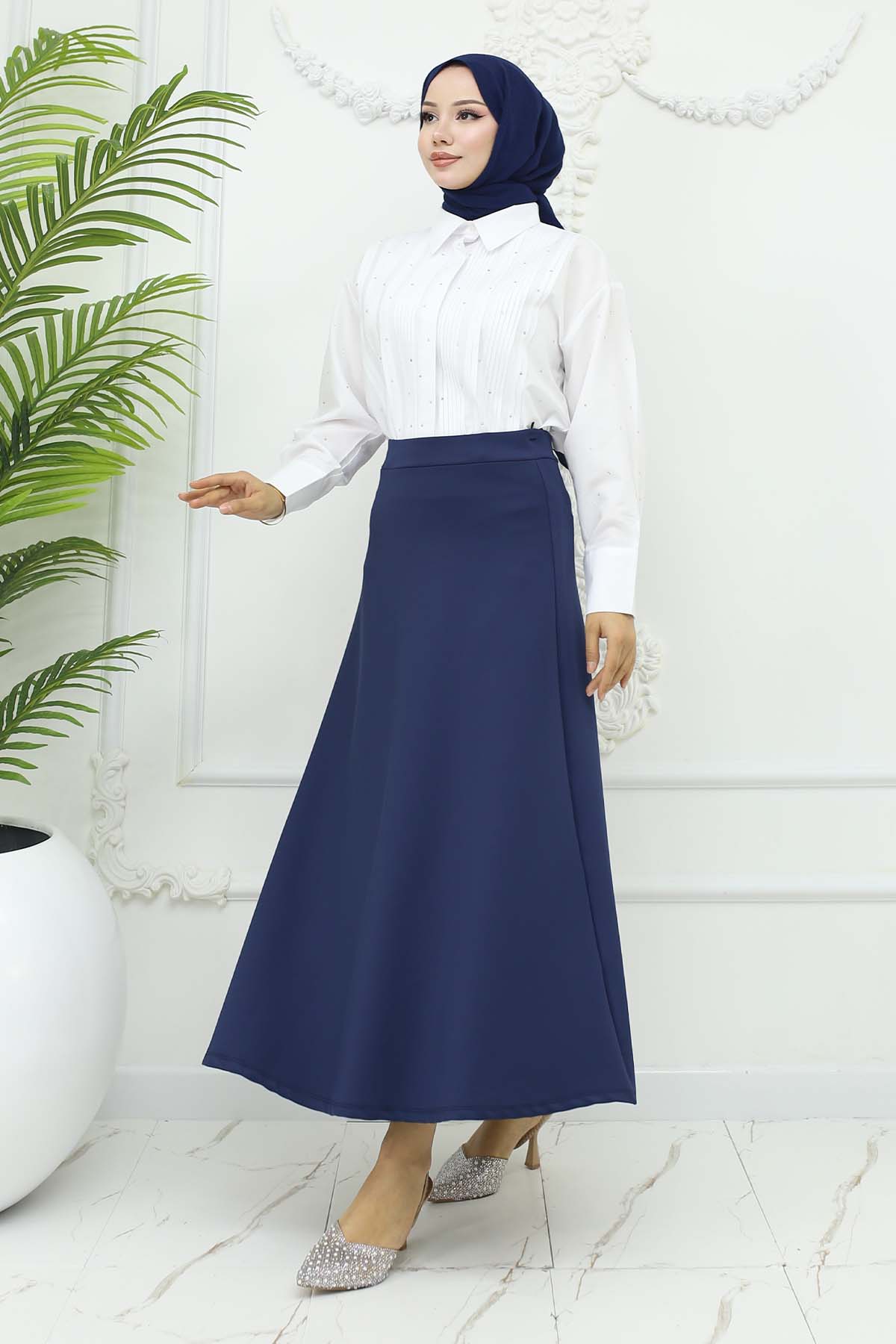 BNG Women Scuba Kloş Etek Lacivert 212 - Mazarrón