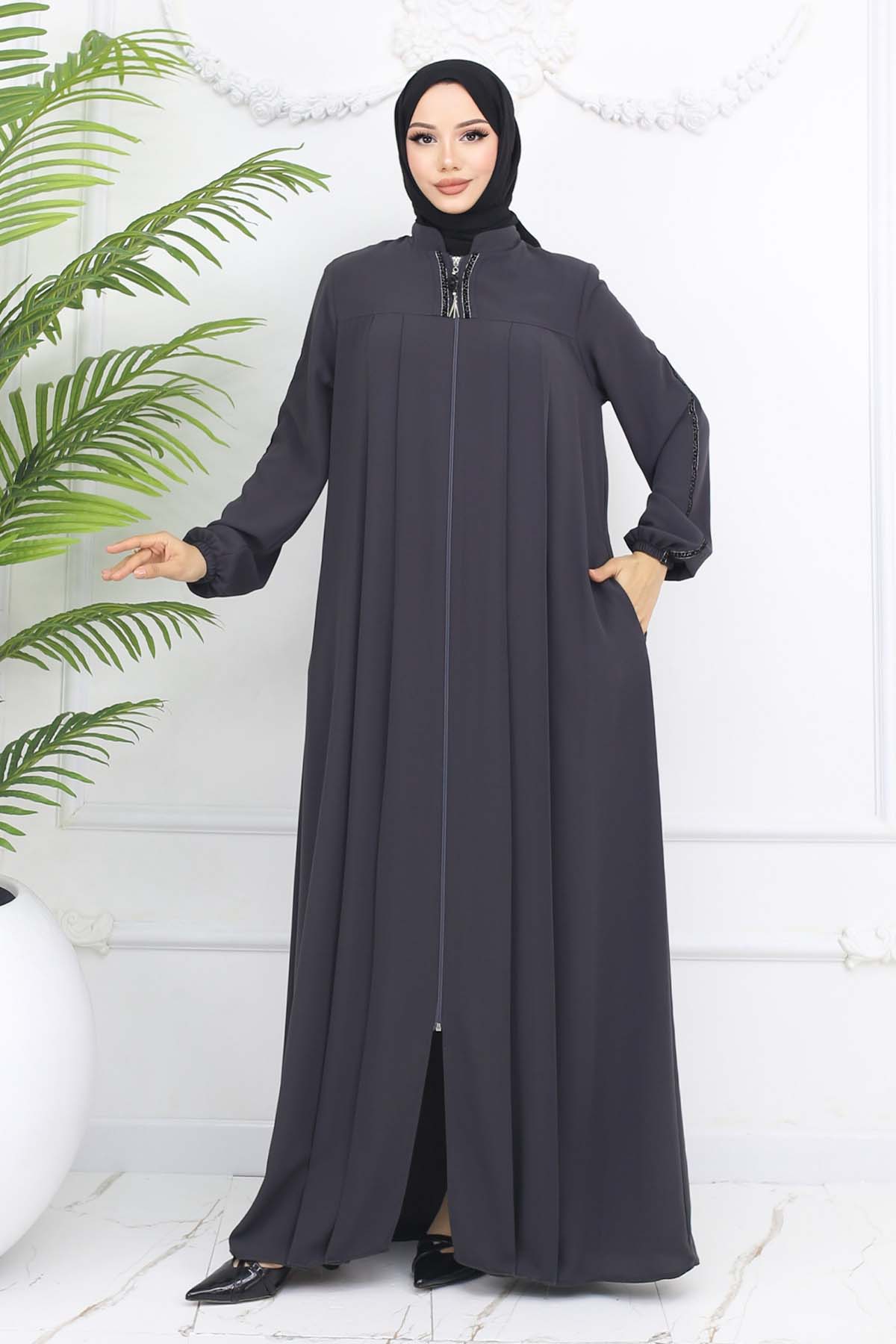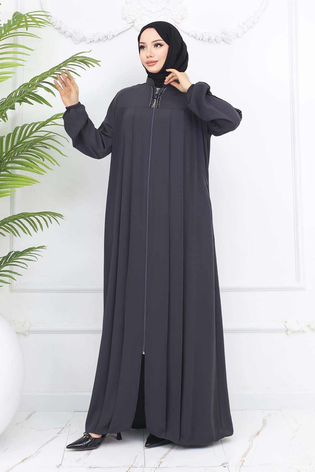 BNG Women Şerit Detaylı Robalı Ferace Antrasit 1007 - Neumarkt