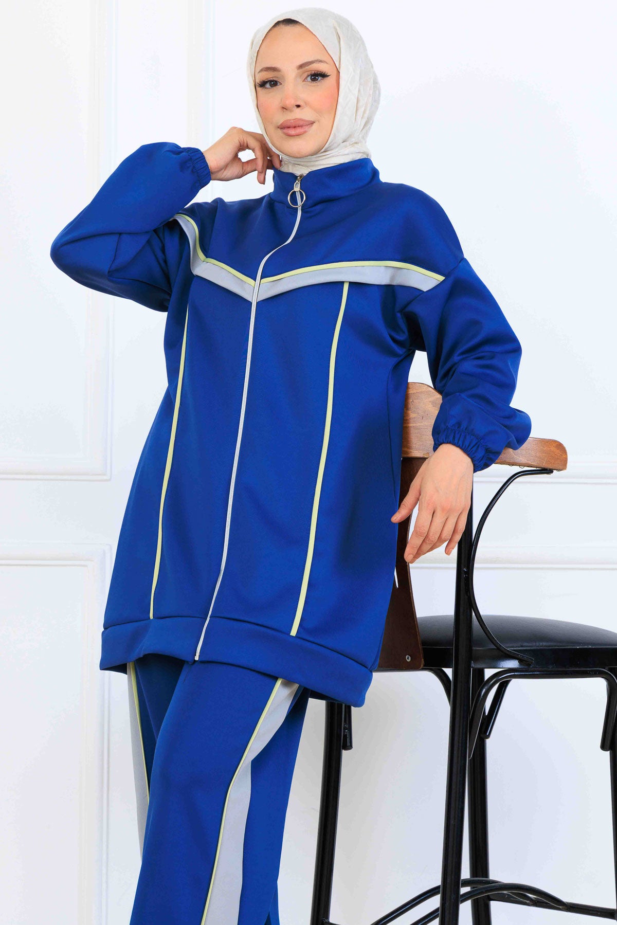 BNG Women Şerit Detaylı Scuba İkili Takım N5347 Mavi - Lodi