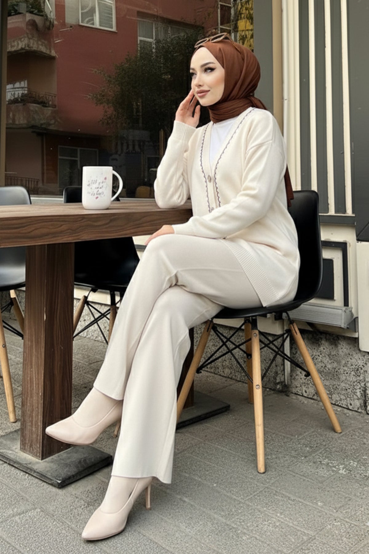 Ürün Bilgisi: Hırka Boy 80 cm, Pantolon Boy 100 cm.Kumaş türü:%100 Merserize Kumaş.Manken Ölçüleri: Boy: 168 cm, Göğüs: 83 cm, Bel:68 cm, Basen:90 cm.Mankenin üzerindeki ürün: Standart Bedendir.36-44 arası uyumludur.Ürün renginde konsept çekimlerinden dolayı ton farklılığı olabilir.