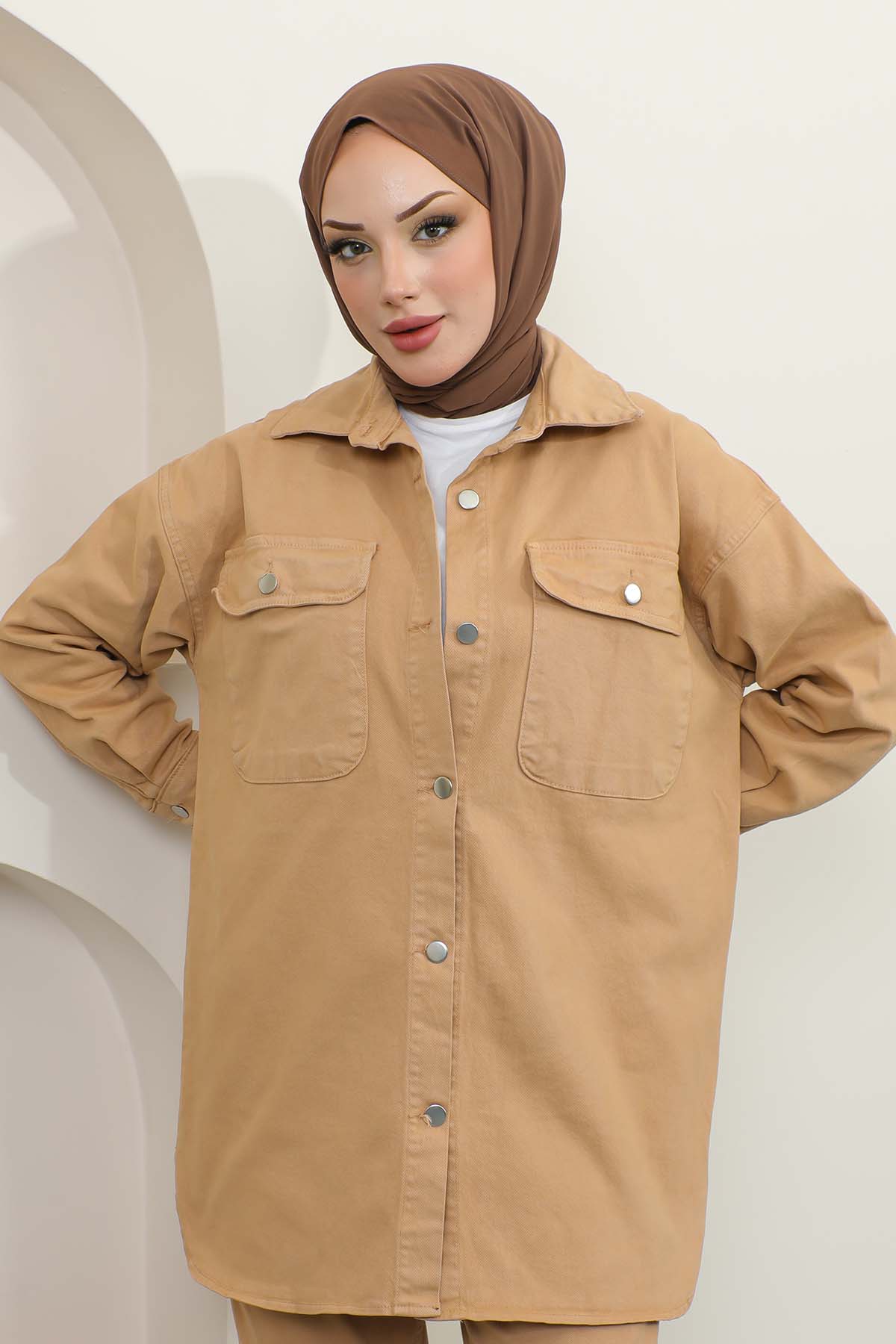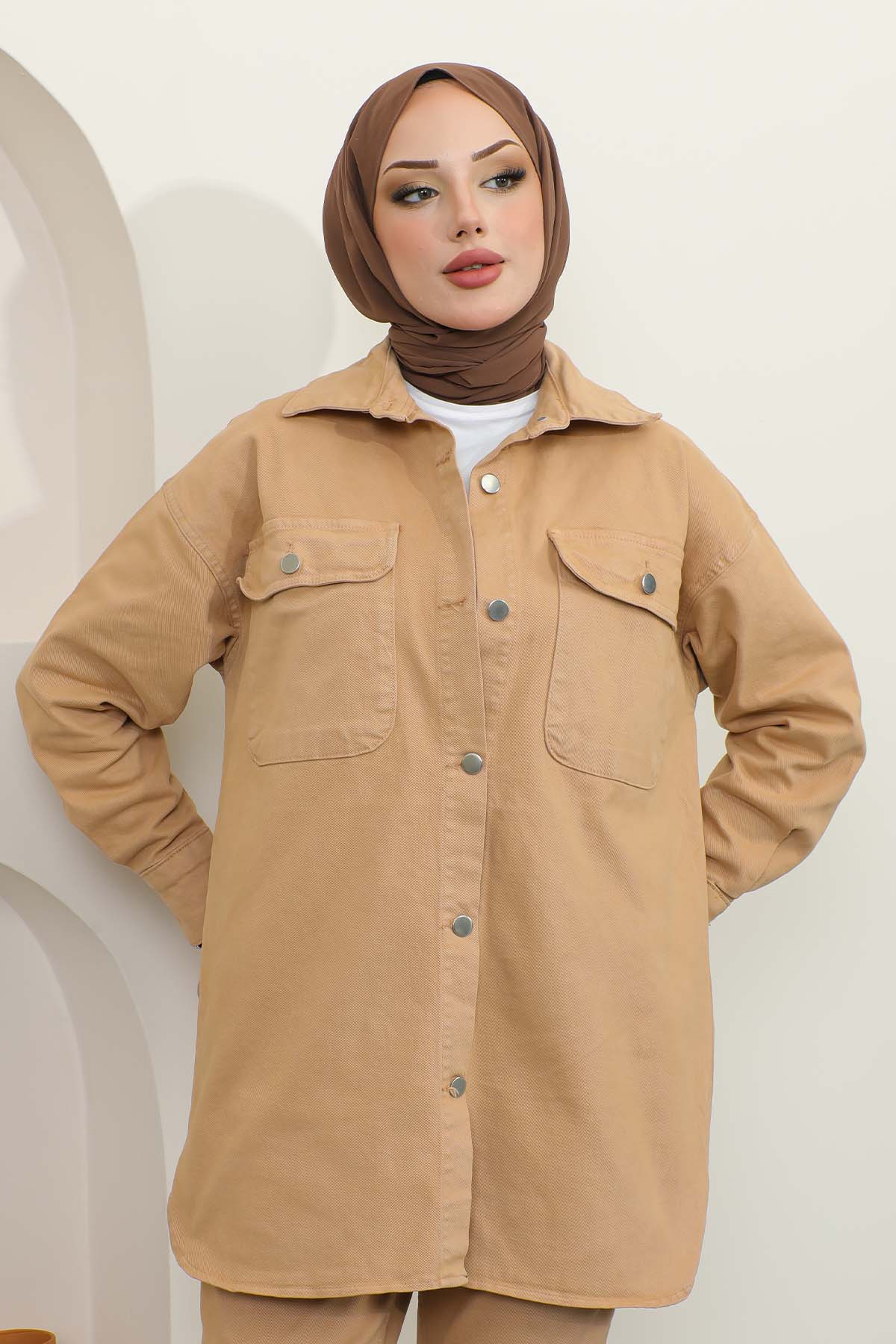 Product Feature: The product is true to size, you can order your regular size. Product Information: Jacket Length: 72 cm Chest: 100 cm Waist: 104 cm. Fabric type: 100% Cotton Denim fabric. Model Measurements: Height: 170 cm, Chest: 82 cm, Waist: 70 cm, Hips: 86 cm. The product on the model is size 38/M. There may be a slight difference in color tone due to concept shootings in the product color.