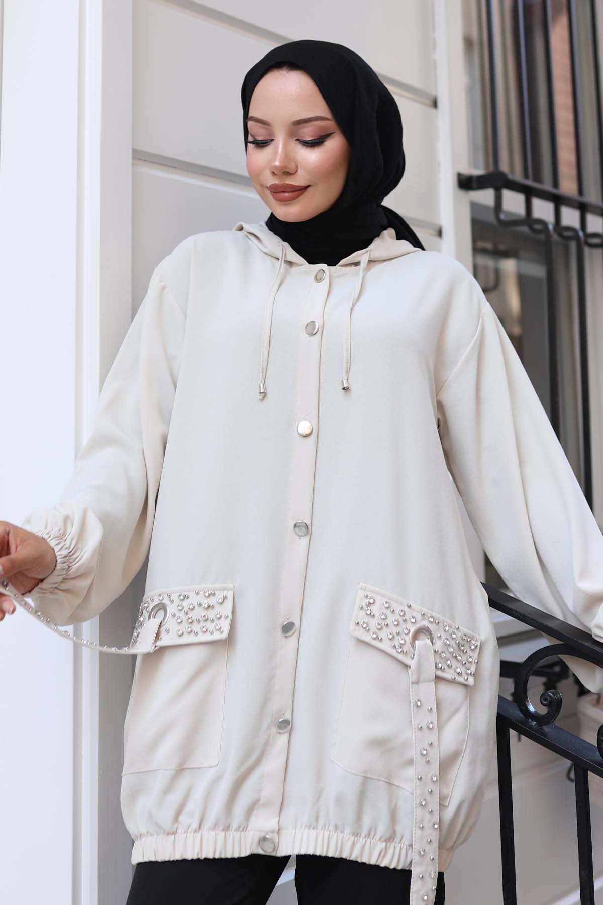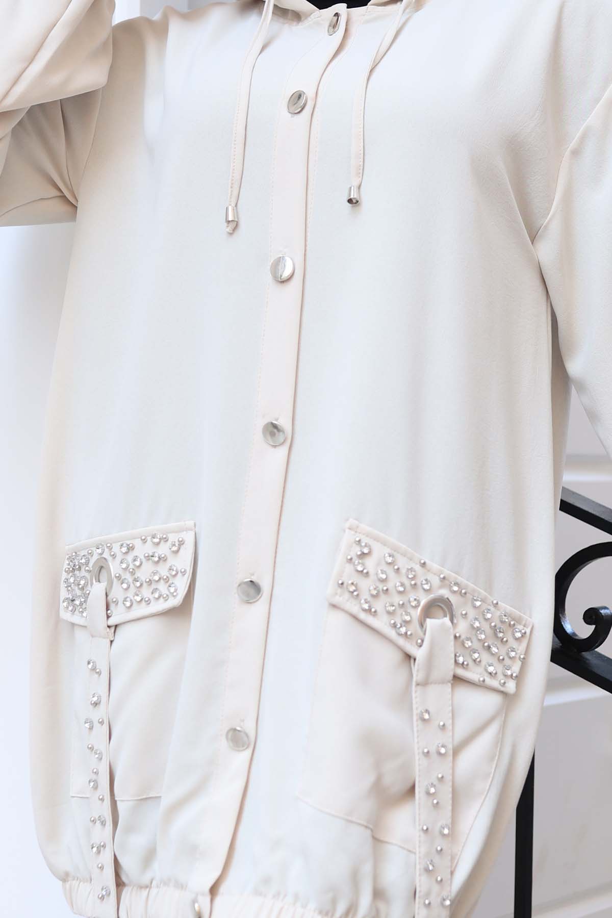 BNG Women Stone Detailed Buttoned Short Pocket Stone Color 3241 - Bolingbrook