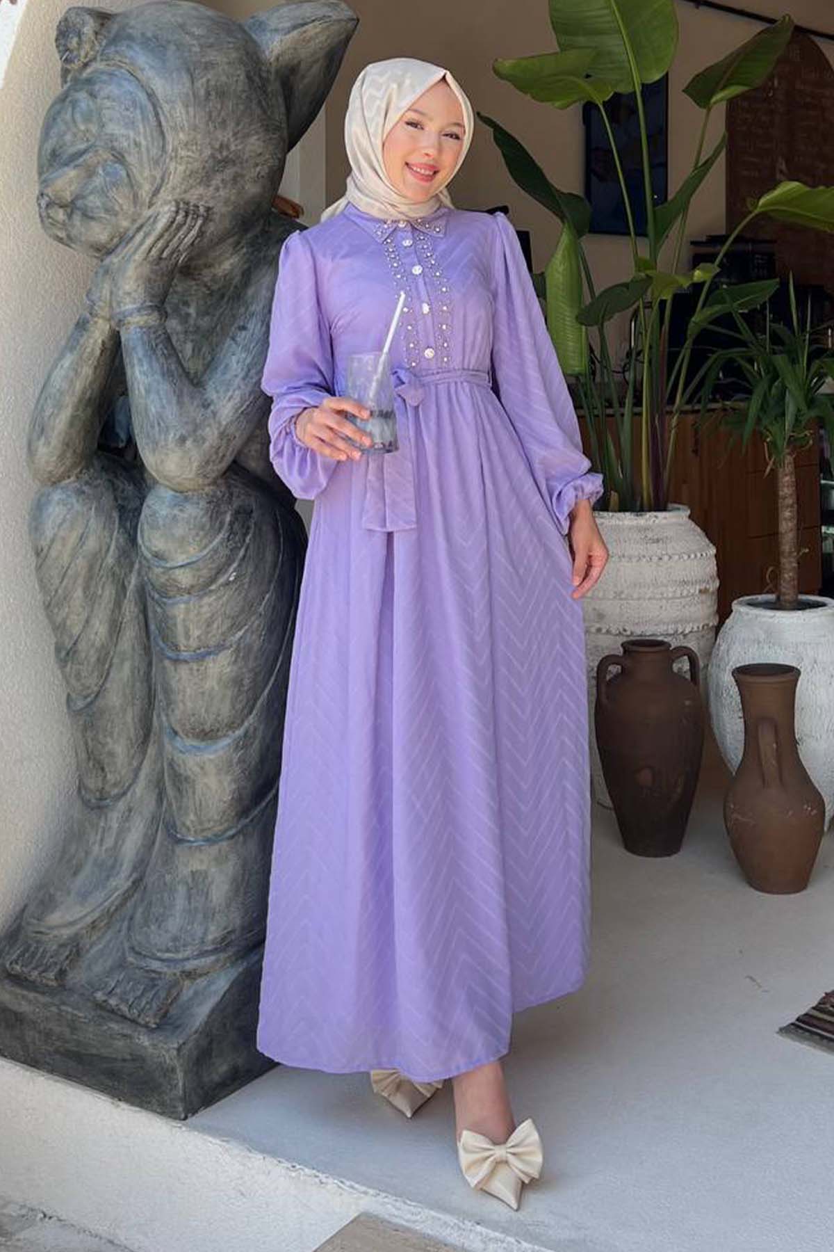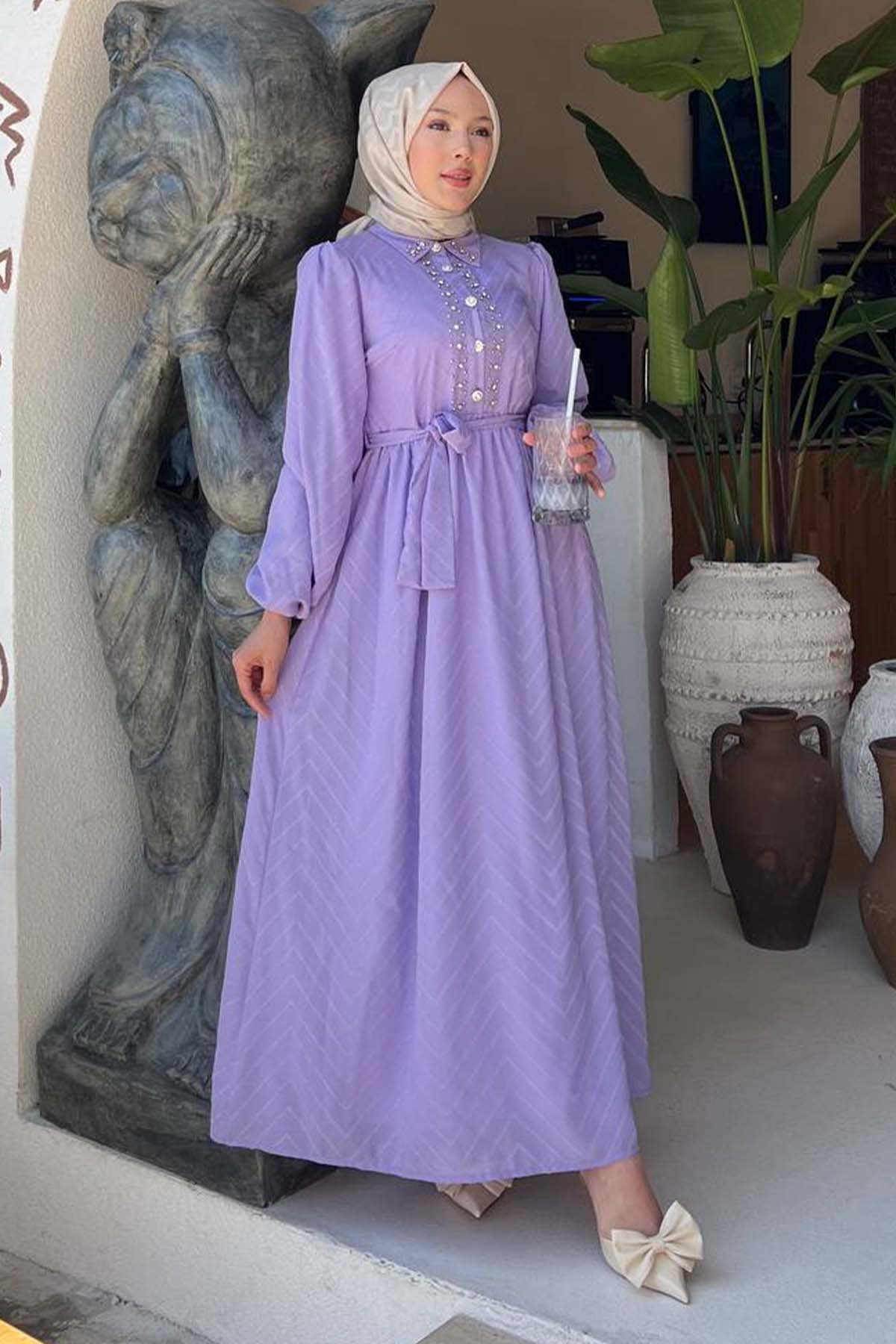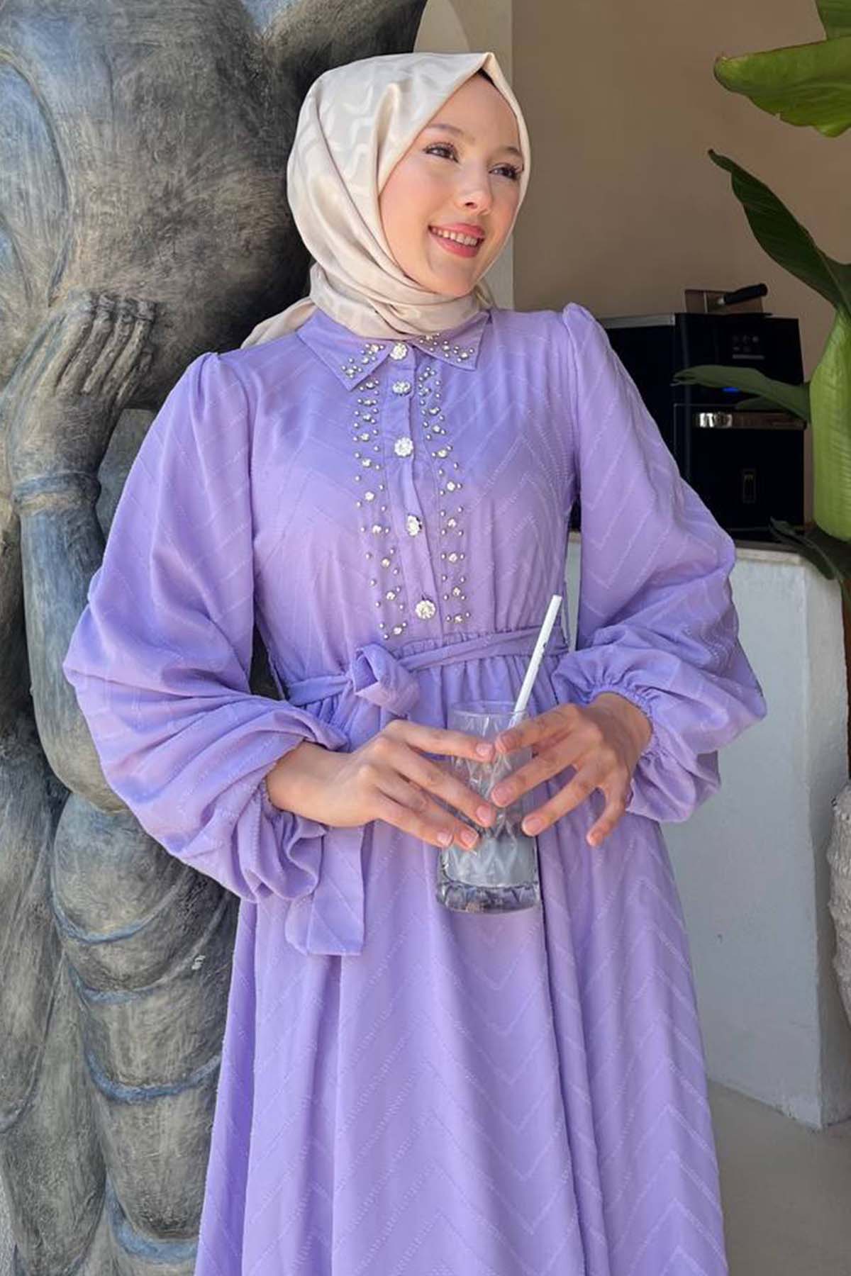 BNG Women Taş Detaylı Tesettür Elbise Lila 1412 - Figueira da Foz