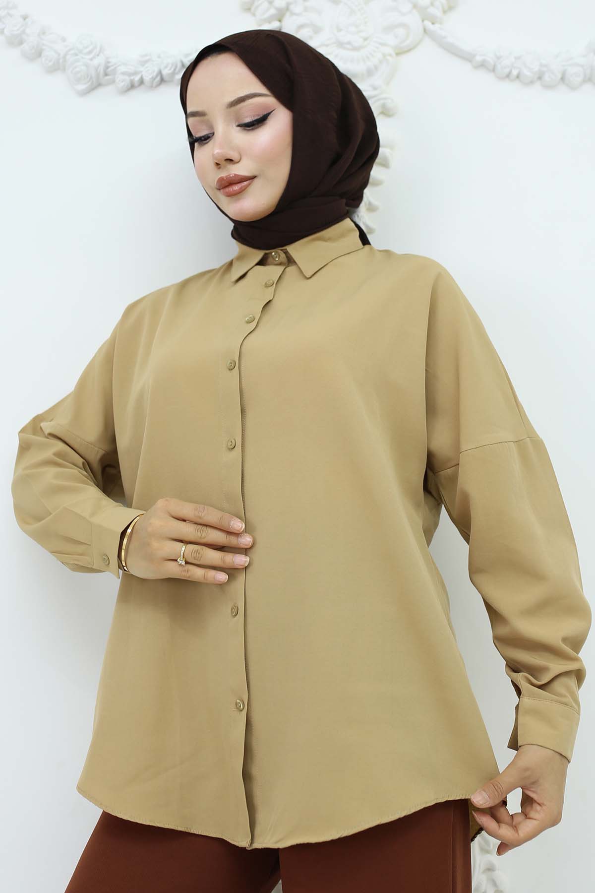 BNG Women Tesettür Gömlek Bej 3900 - Lluchmayor