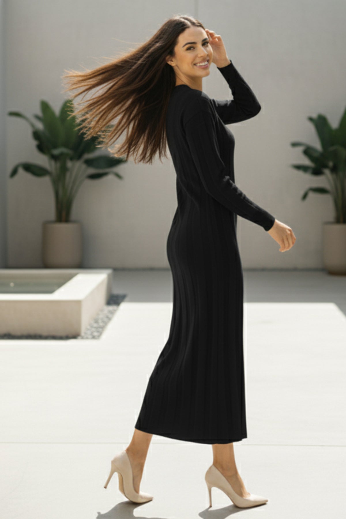 BNG Women Triko Elbise N7050 Siyah - Schaffhausen