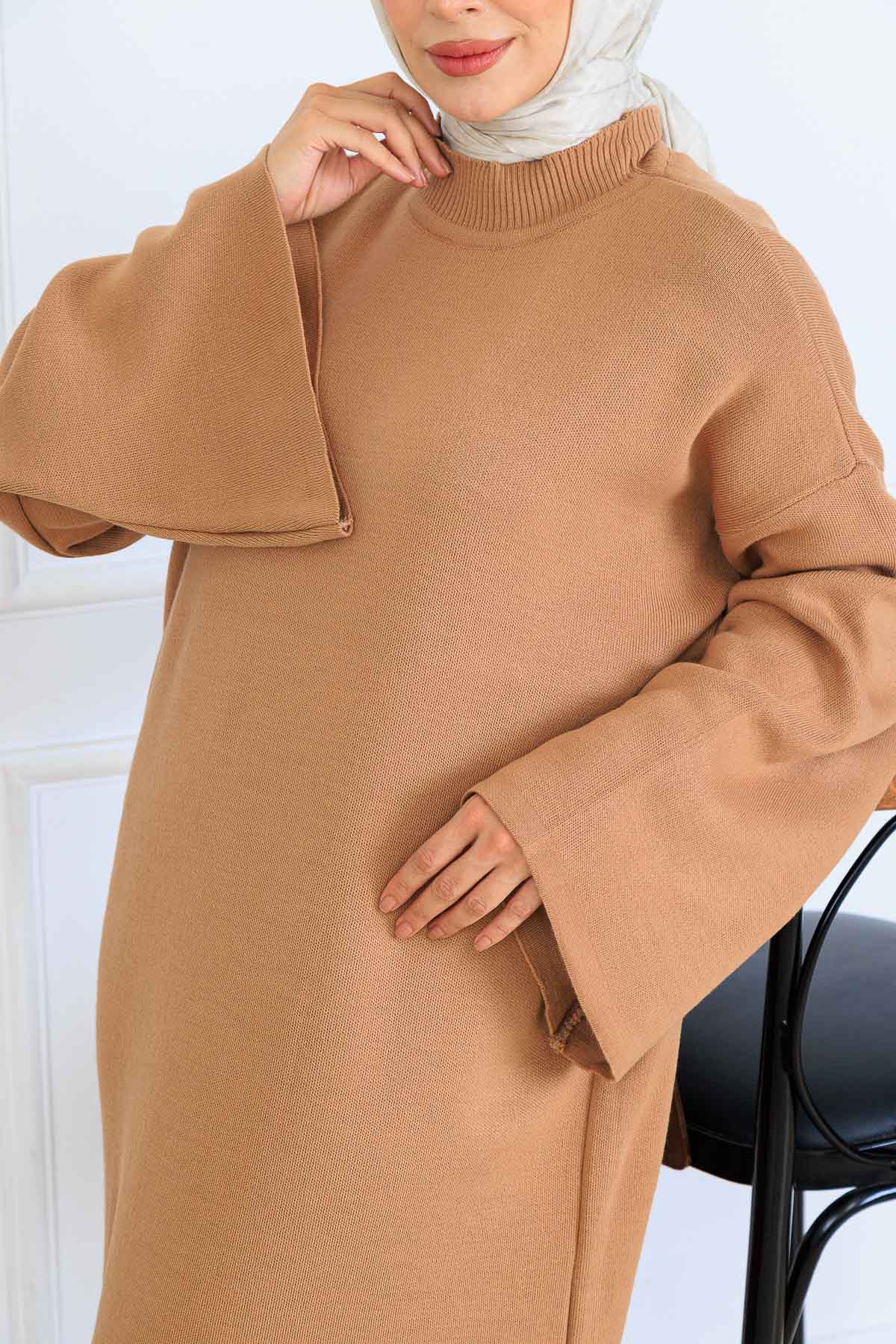 BNG Women Uzun Triko Elbise H25303 Vizon - Carson