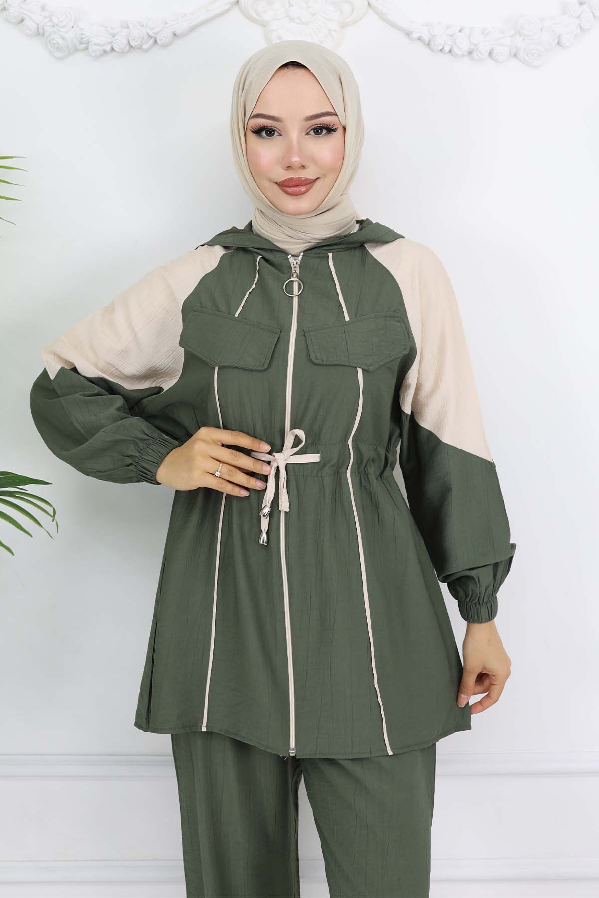 BNG Women Waist-Tied Striped Set Khaki 4737 - Prescott Valley