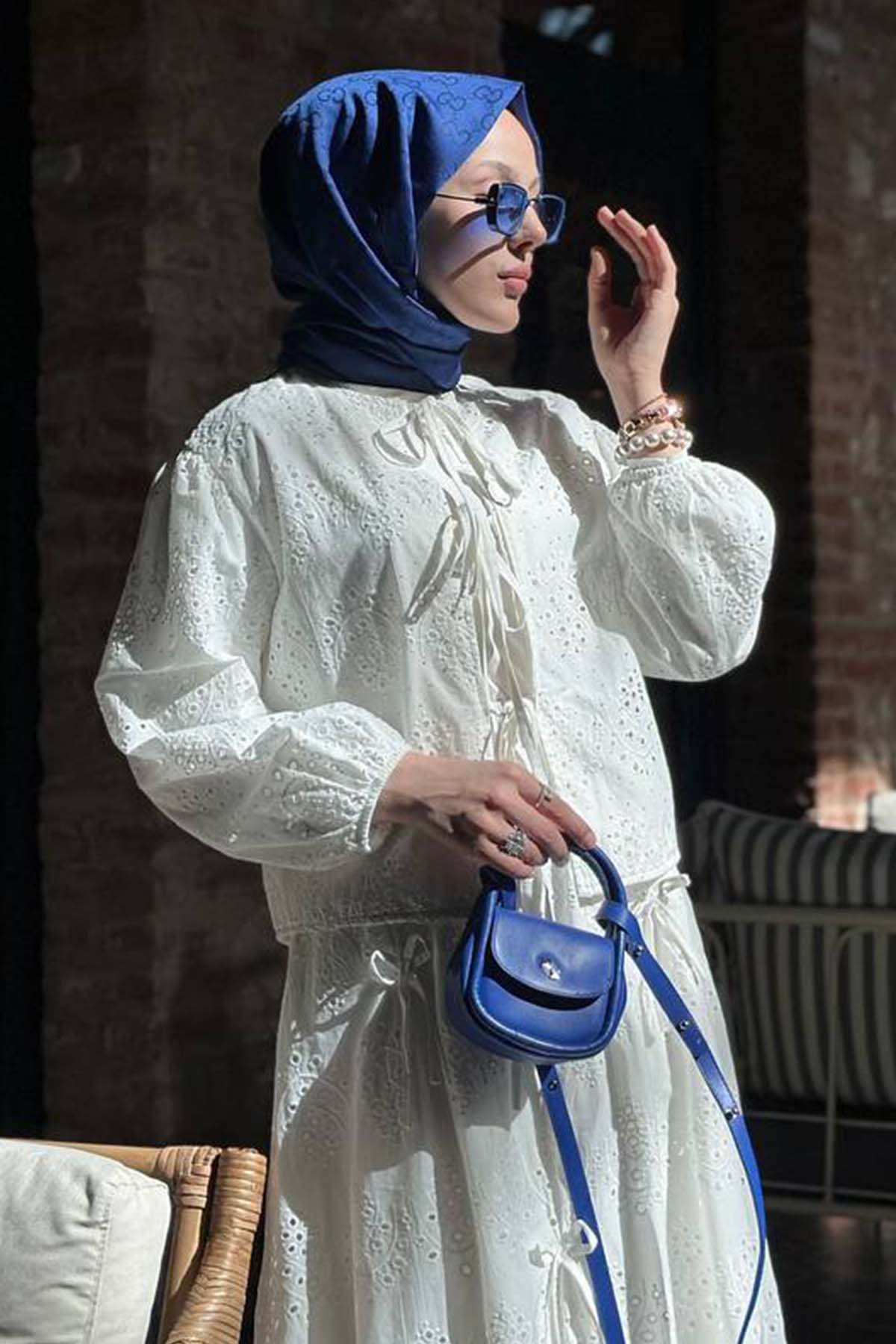 Product Feature: The product is in normal size, you can choose your regular size. Product Information: Top Length: 54 cm Chest: 100 cm Skirt Length: 95 cm Waist: 62 cm. Fabric type: 80% Cotton 20% Polyester. Model Measurements: Height: 168 cm, Chest: 90 cm, Waist: 71 cm, Hips: 91 cm. The product on the model is size M/38. The waist of the skirt in our product is elastic. There may be a color difference due to concept shootings in the product color.