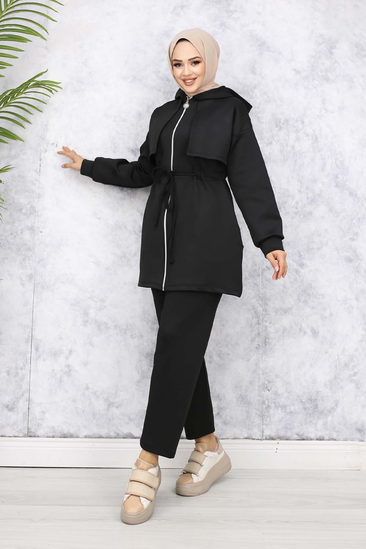 BNG Women Yaka Detaylı Scuba İkili Takım Siyah 4596 - Toms River