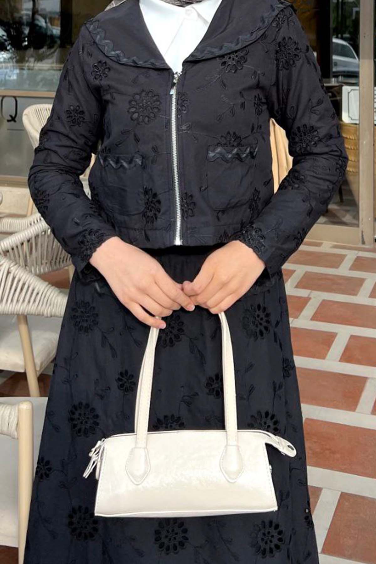 BNG Women Yakalı Brode Takım Siyah 3016 - Etterbeek