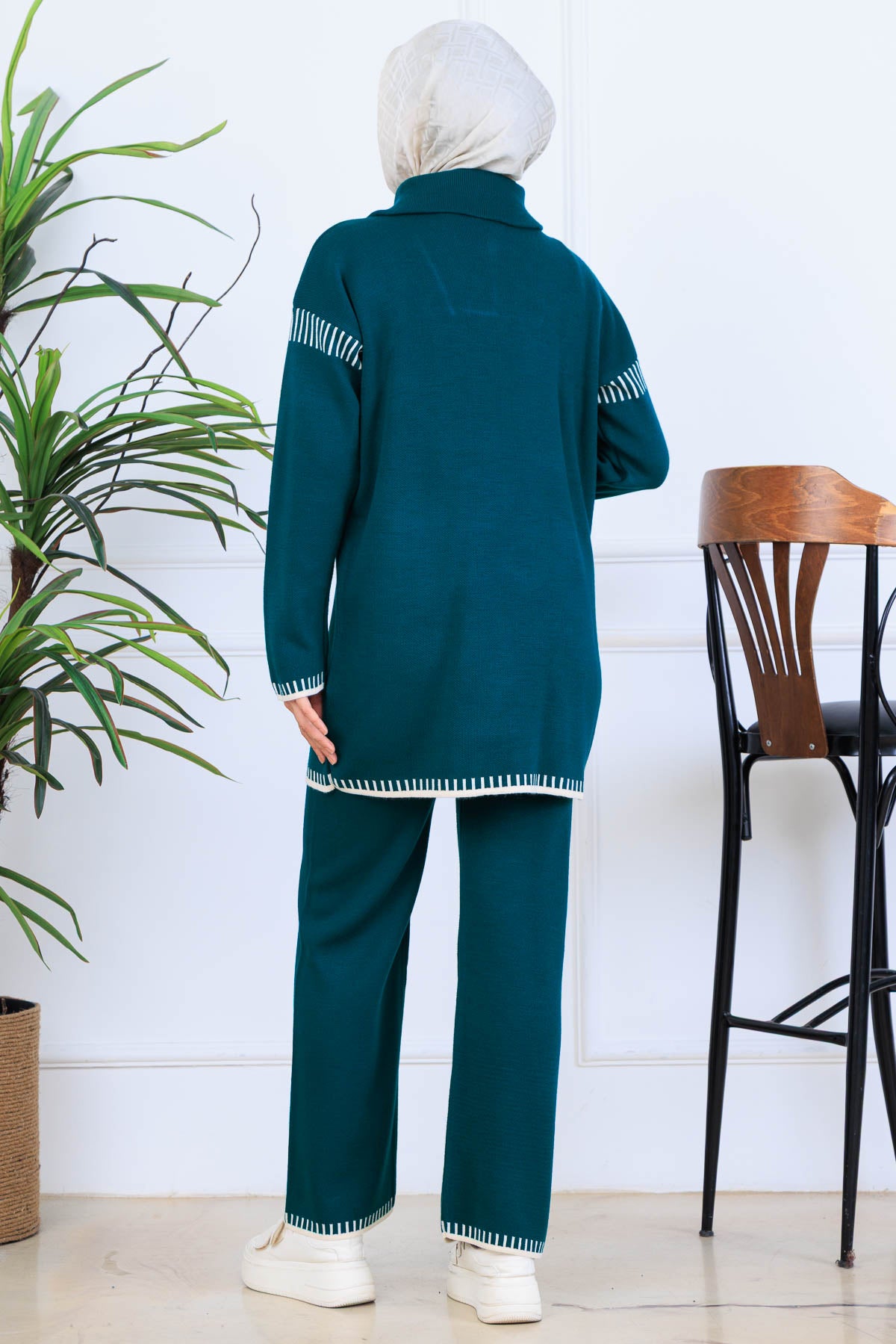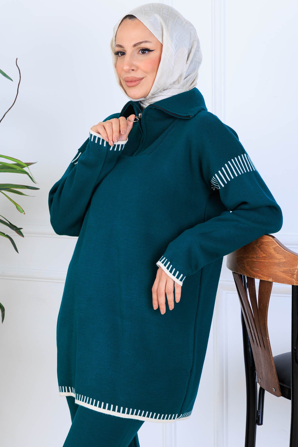 BNG Women Yakası Fermuarlı Şerit Detay Triko Takım S1061 Zümrüt Yeşili - San Bruno