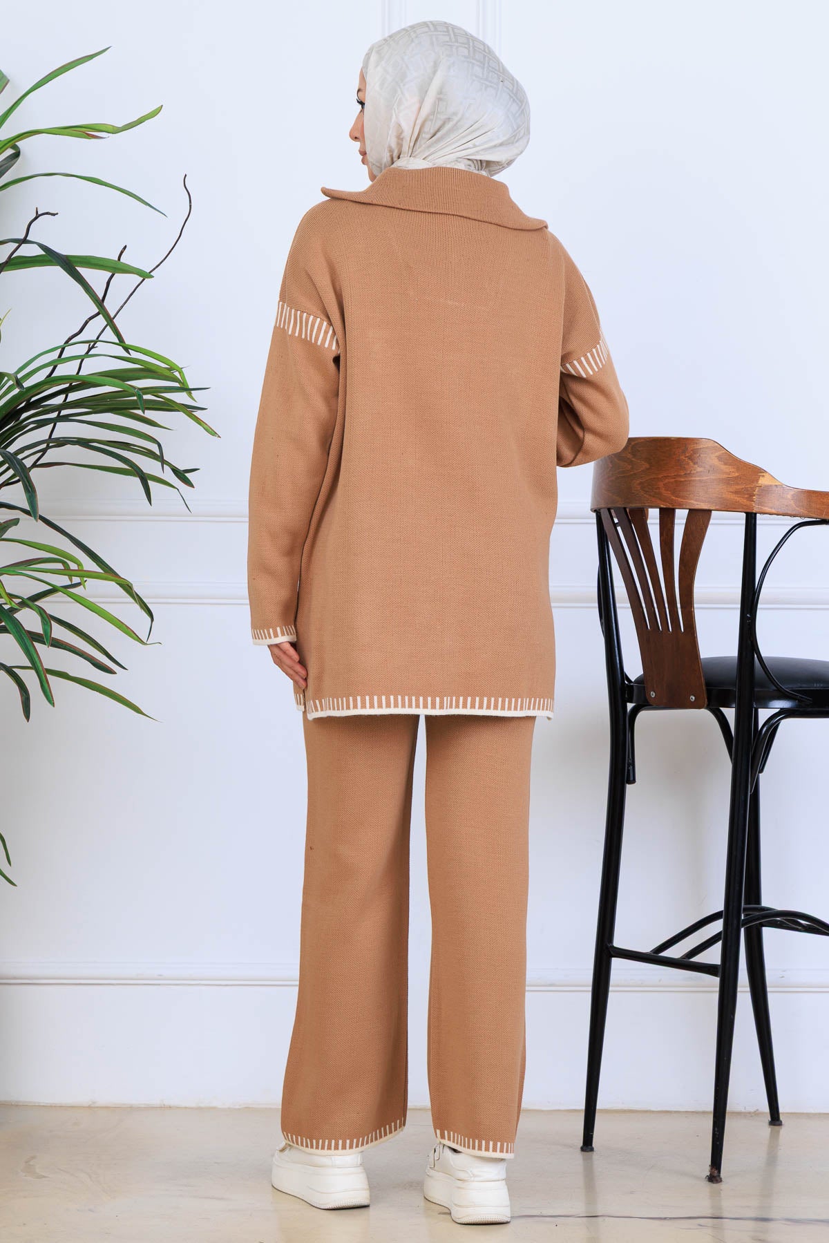 BNG Women Yakası Fermuarlı Triko Takım S1105 Vizon - Estero