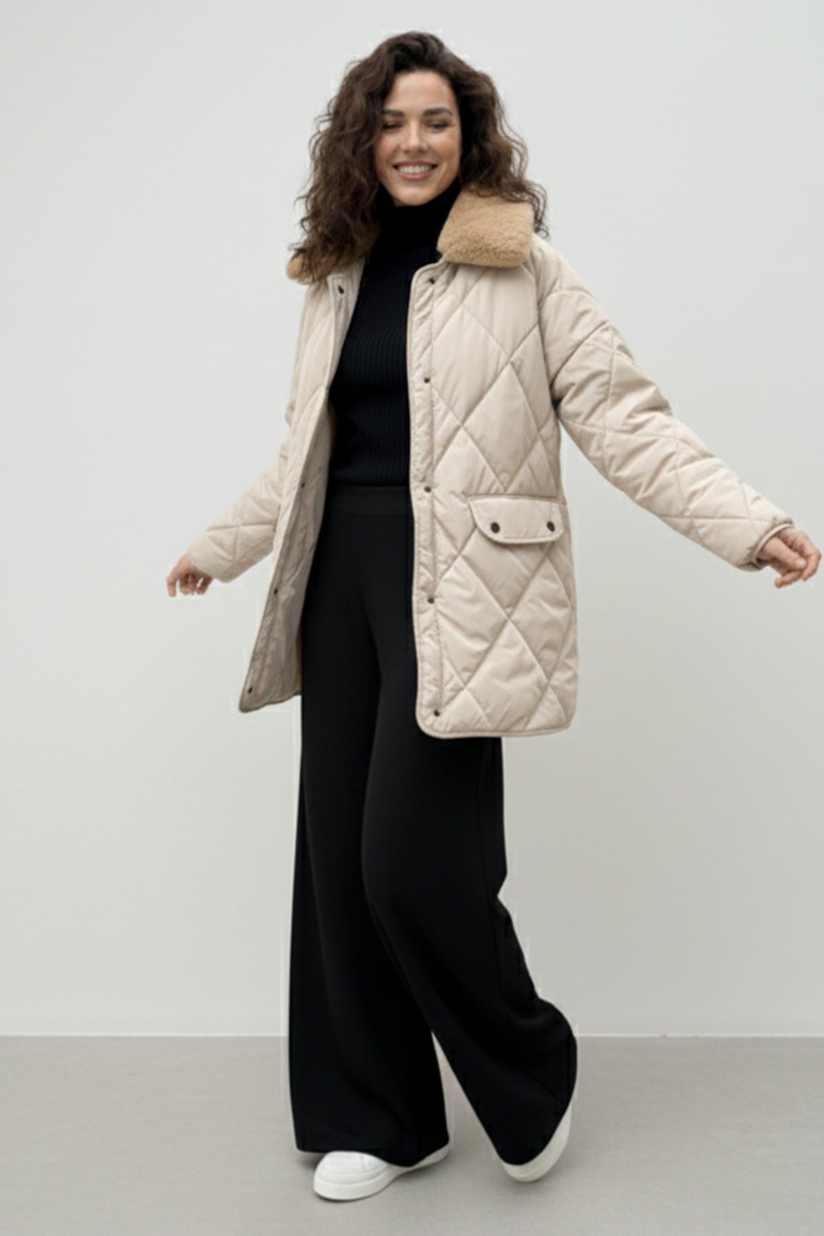 Ürün Bilgisi: Mont Boy : 75 cm , Göğüs : 116 cm.Kumaş türü: %100 Polyester Kumaş.Manken Ölçüleri: Boy: 165 cm, Göğüs: 83 cm, Bel:68 cm, Basen:90 cm.Mankenin üzerindeki ürün: 38-40 Bedendir.Ürün ceplidir.Ürün renginde konsept çekimlerinden dolayı ton farklılığı olabilir.